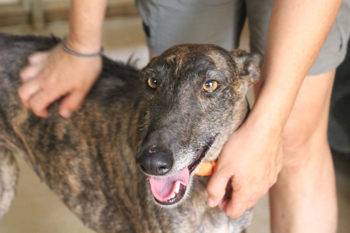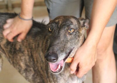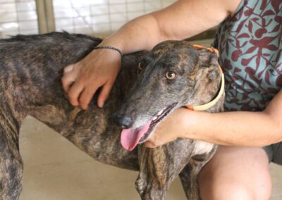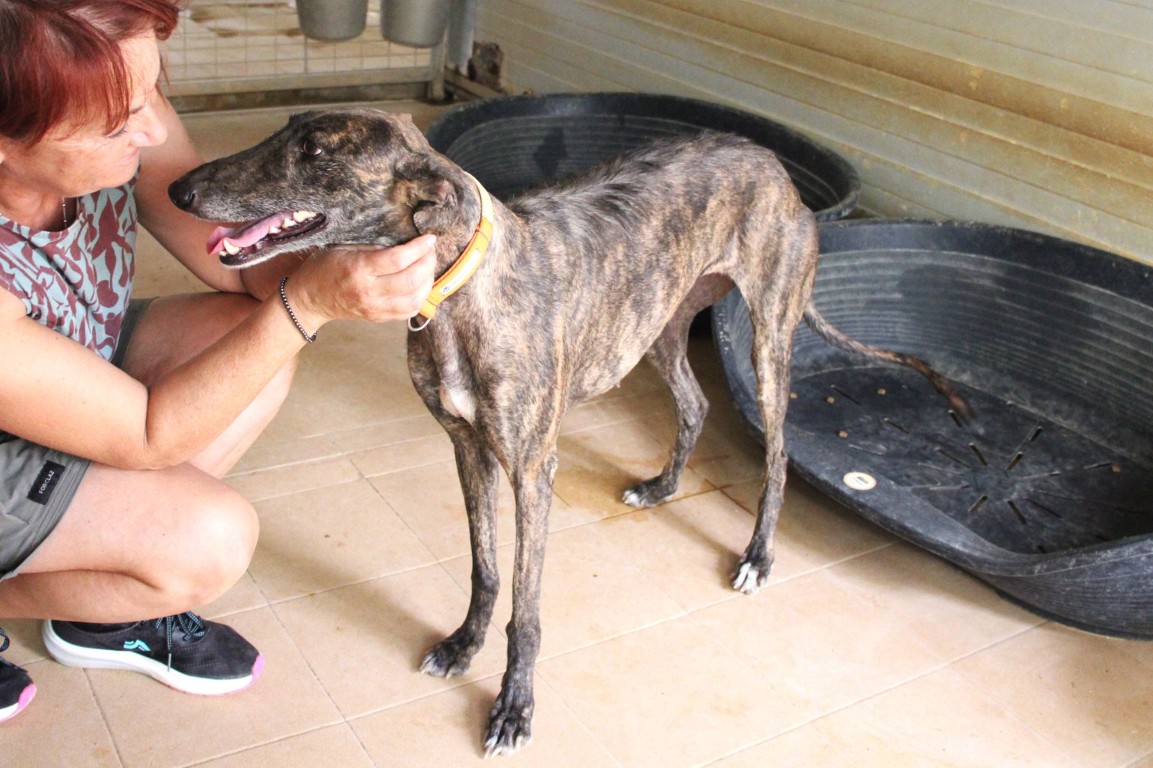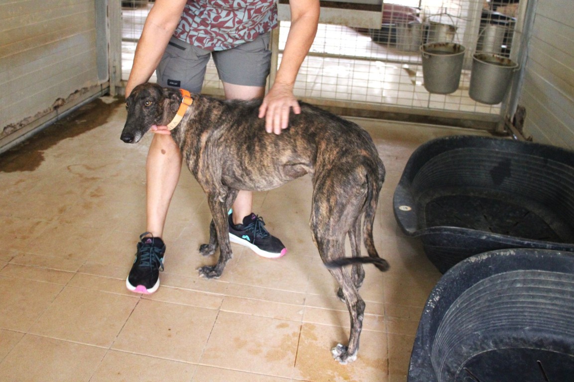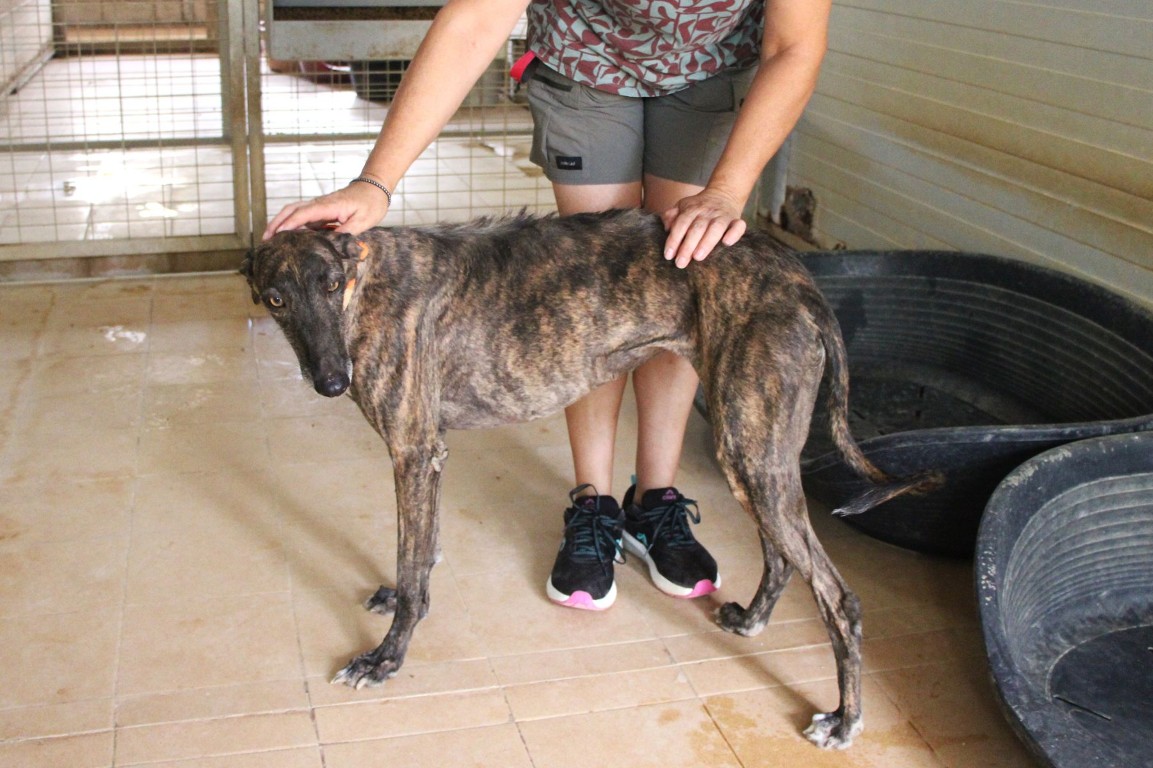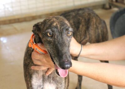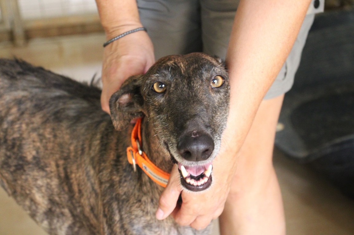 Voici une adorable galga de 4 ans, abandonnée comme tant d’autres par son galguero et actuellement au refuge de la FBM.