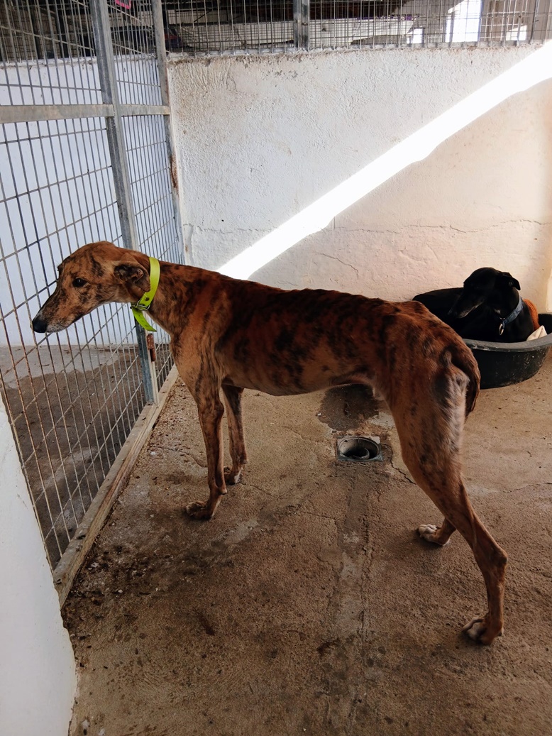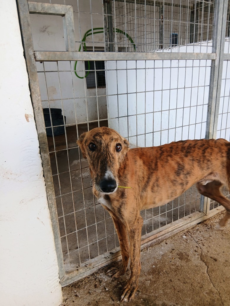 Lucas est un très beau galgo bringé de 68 cm, aussi doux qu’un agneau 🐑✨. Abandonné par un galguero, il est arrivé au refuge d’Écija sans comprendre ce qui lui arrivait… Malgré cela, il a gardé une immense gentillesse et une grande sensibilité 🥰
