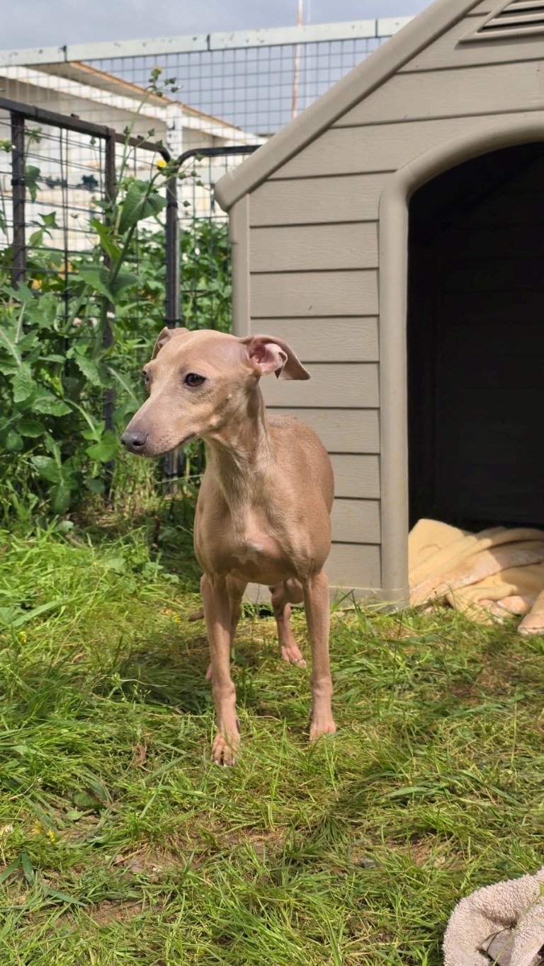 Lucy née le 13/06/2024 – 34 cm – 5 kg environ – PLI ( Petit lévrier Italien) – Sociable – – Refuge de Carmona