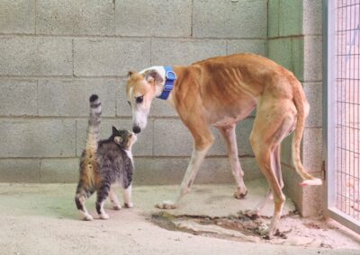 Ce grand garçon d’environ 70 cm a connu des débuts difficiles… 😔 Abandonné par un galguero, il garde encore une petite timidité, trace de son passé douloureux.