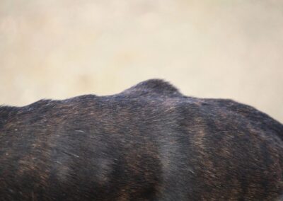 MAGDA porte sur son corps les marques de cette vie de misère. Elle n’est pas la “petite galga parfaite”, jeune, lisse et sans défauts que certains recherchent à tout prix. Elle a des petites tumeurs aux mamelles, conséquences de portées répétées et sera opérée. Elle souffre aussi d’un ulcère de pression au ventre, dû au fait d’avoir dormi trop longtemps sur des surfaces dures . Une excroissance osseuse au niveau de la hanche fait actuellement l’objet d’examens approfondis (radiographie demandée), et une échographie cardiaque est également prévue, par précaution ❤️🩹.