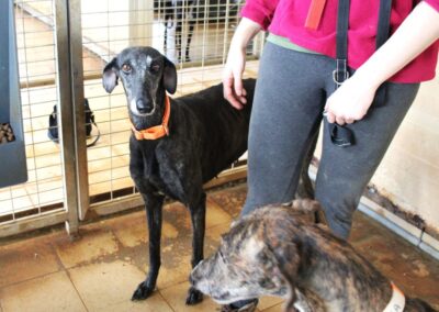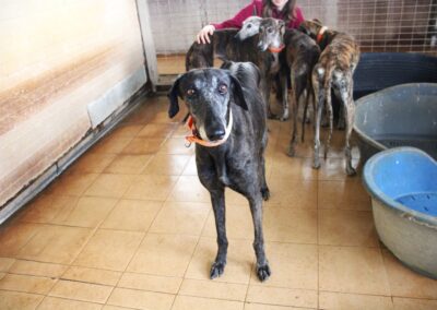 Elle est arrivée au refuge avec Laia et Mireia, et comme beaucoup de galgas exploitées, MAGDA n’a jamais vécu seule. La présence d’autres chiens sera donc essentielle à son équilibre 🐶. Un jardin clos sera également demandé 🌳, afin qu’elle puisse enfin se reposer paisiblement et profiter d’un environnement sécurisant.