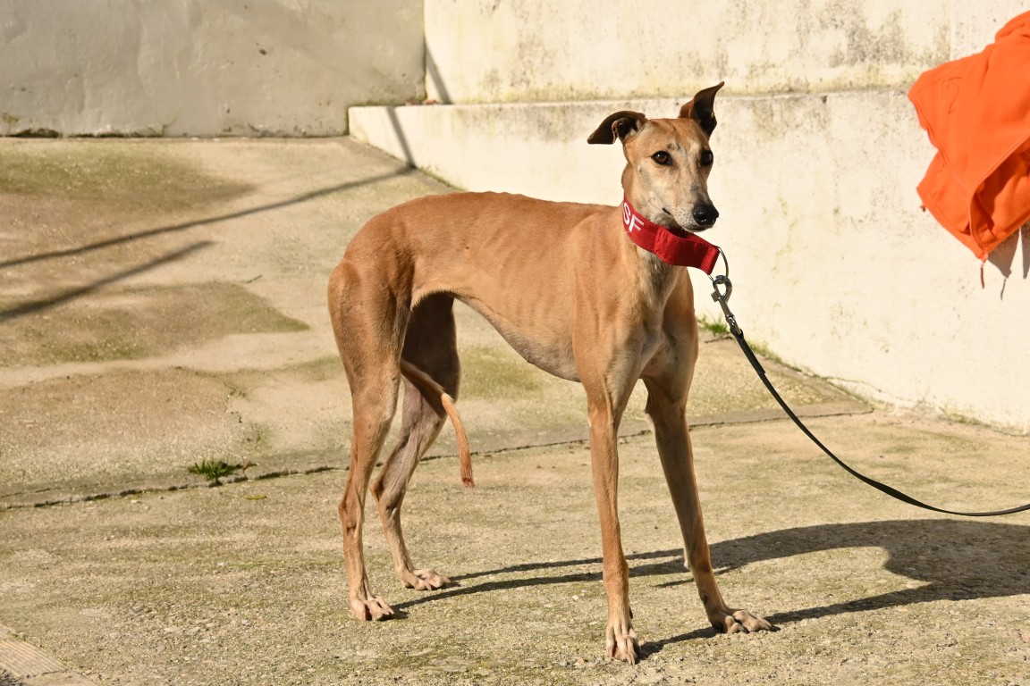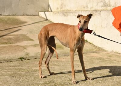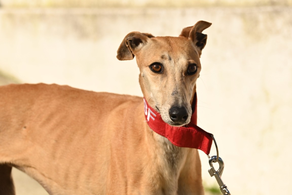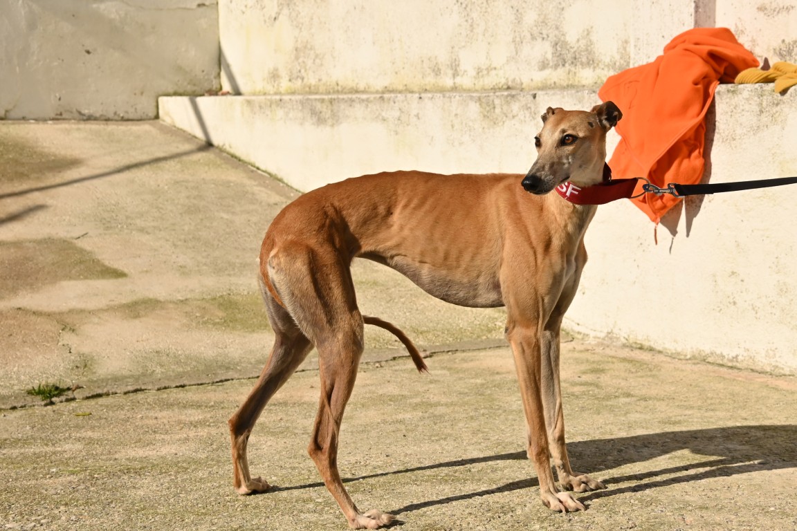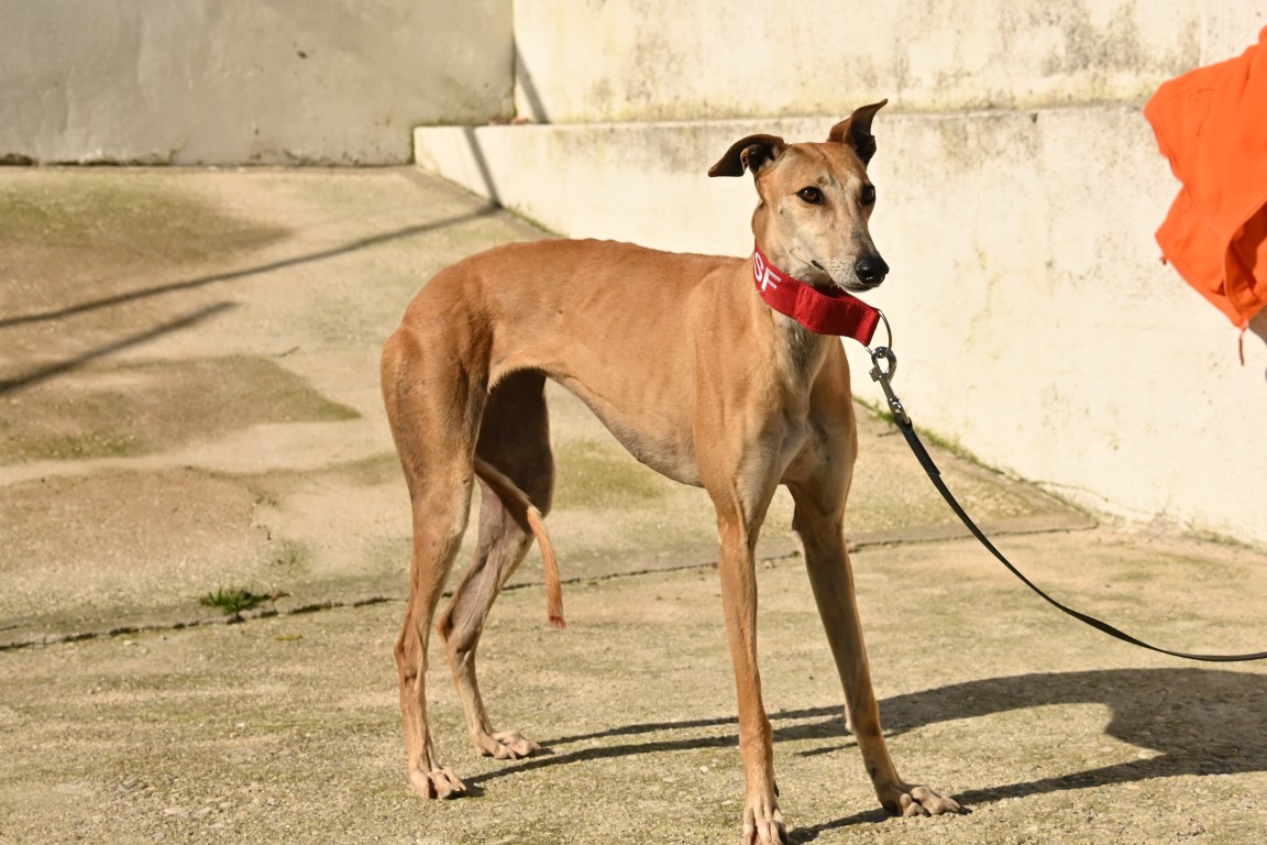 Voici Manuela, une jolie galga couleur cannelle, toute fine et élégante. Derrière sa silhouette délicate se cache une chienne pleine de vie, espiègle et terriblement attachante 🐾.