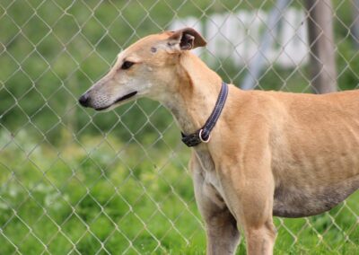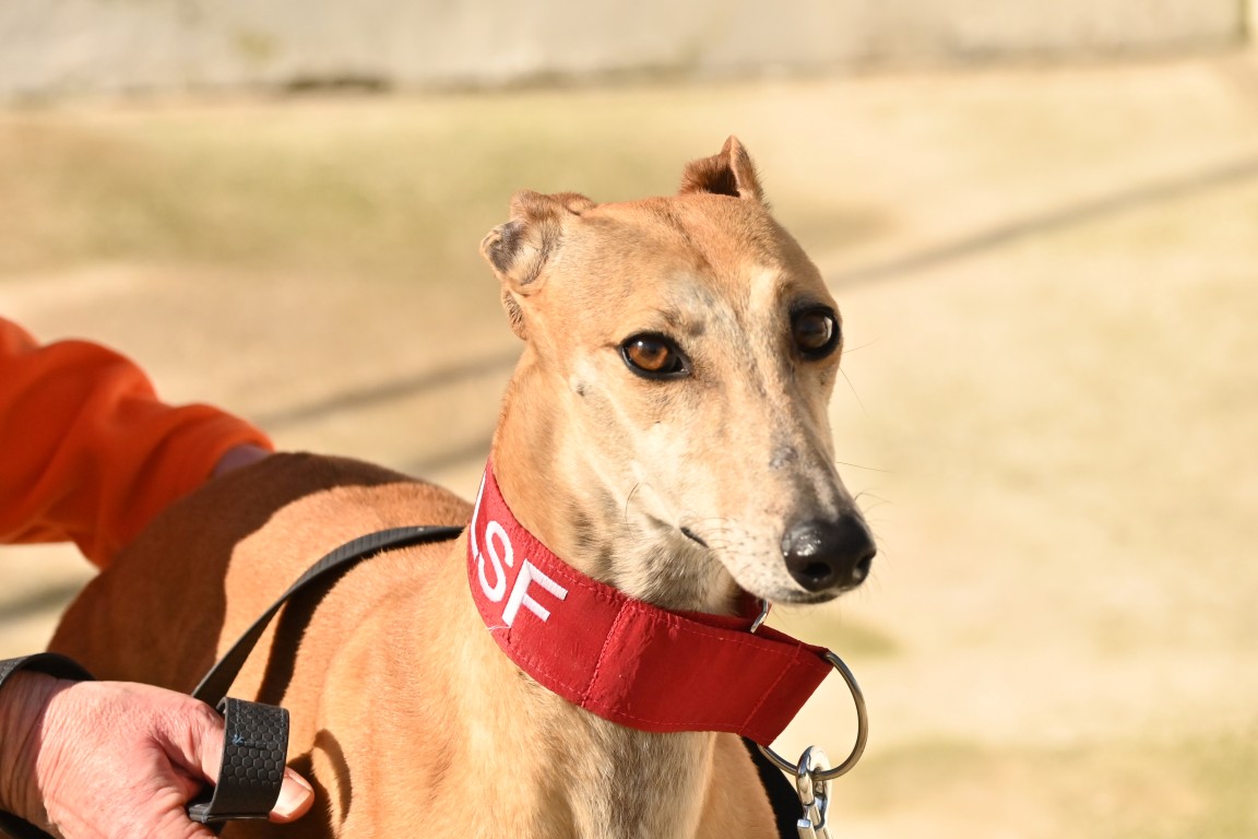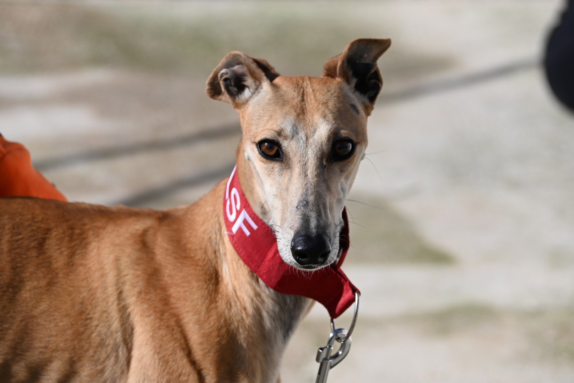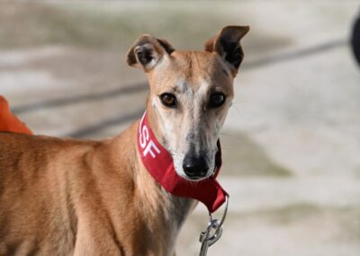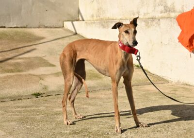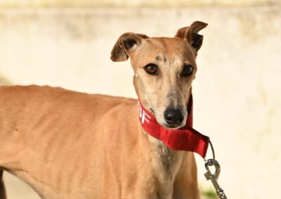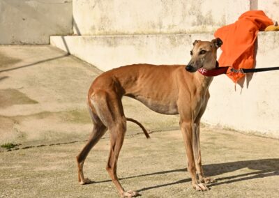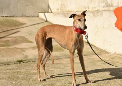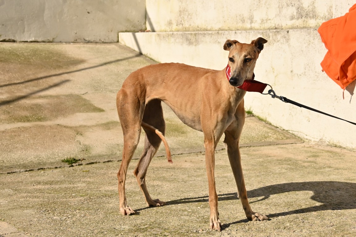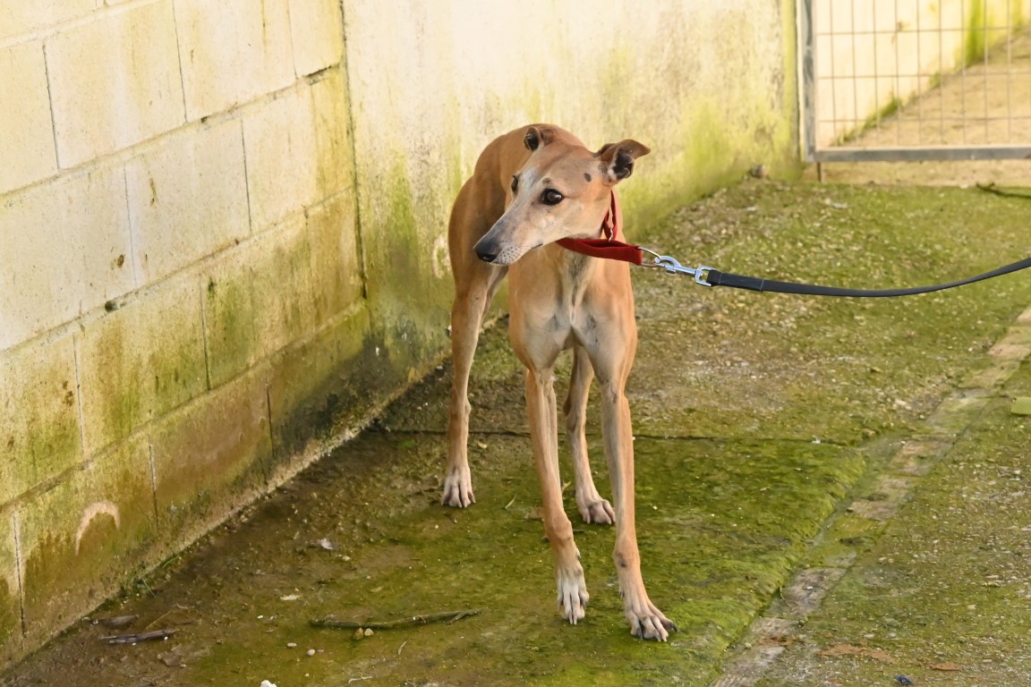 Voici Manuela, une jolie galga couleur cannelle, toute fine et élégante. Derrière sa silhouette délicate se cache une chienne pleine de vie, espiègle et terriblement attachante 🐾.