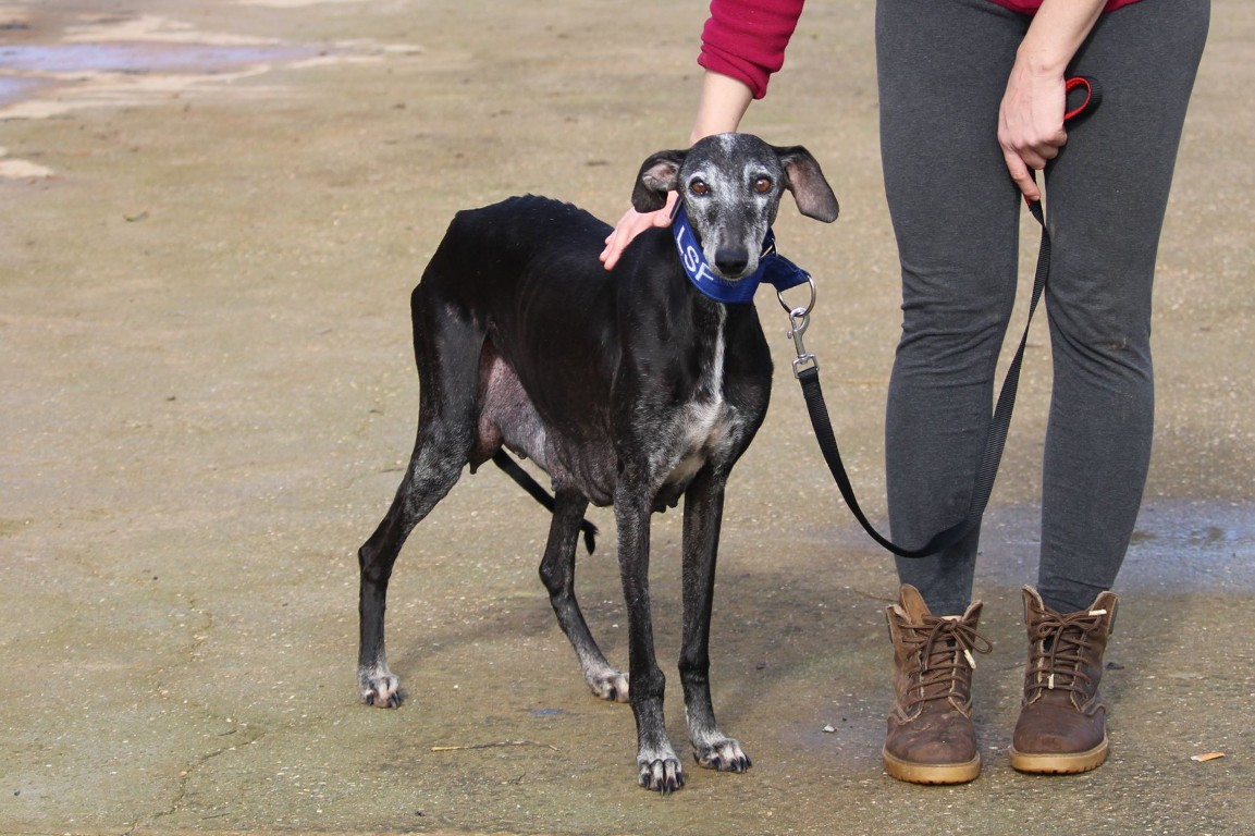 Comme tant d’autres galgas reproductrices en Espagne, MARIONA a vécu dans des conditions indignes. Exploitée sans relâche, privée de soins, de nourriture adaptée et de repos, son corps a été utilisé jusqu’à l’épuisement. Ces femelles ne sont vues que comme des outils de reproduction, sans aucune considération pour leur souffrance ni leur santé… jusqu’au jour où elles sont abandonnées, vidées de leurs forces.