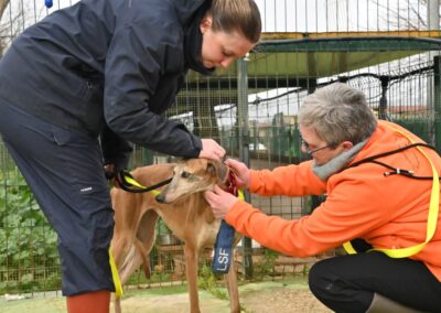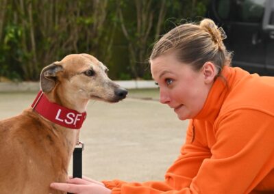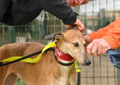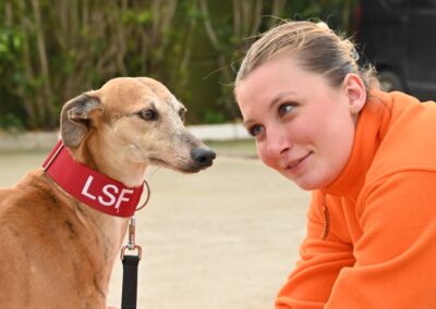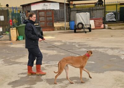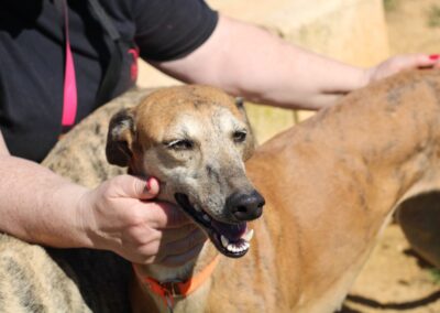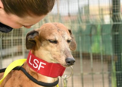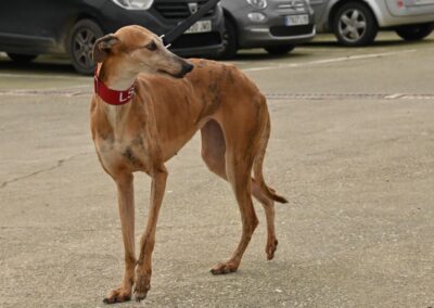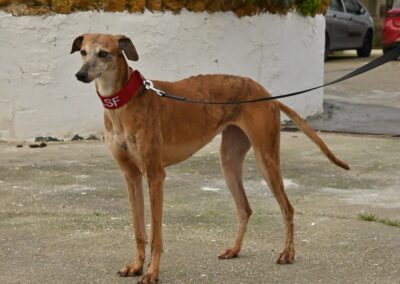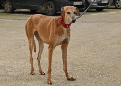 Comme tant d’autres galgos en Espagne, Mirabelle a été abandonnée à la fin de la saison de chasse par son galguero et recueillie au refuge de la FBM. Chaque année, des milliers de galgos subissent ce triste sort : utilisés pour la chasse puis abandonnés lorsqu’ils ne sont plus jugés utiles… Heureusement, certains d’entre eux, comme Mirabelle, ont la chance d’être sauvés et de pouvoir espérer une seconde vie pleine d’amour ✨.