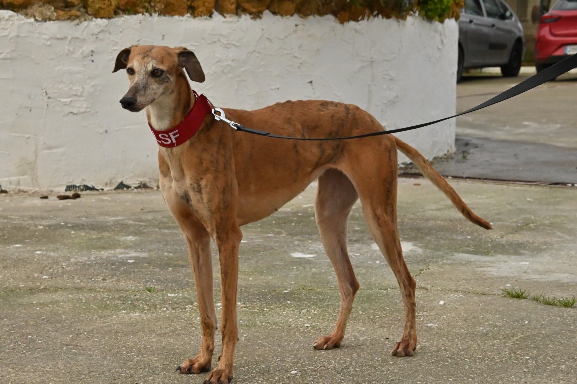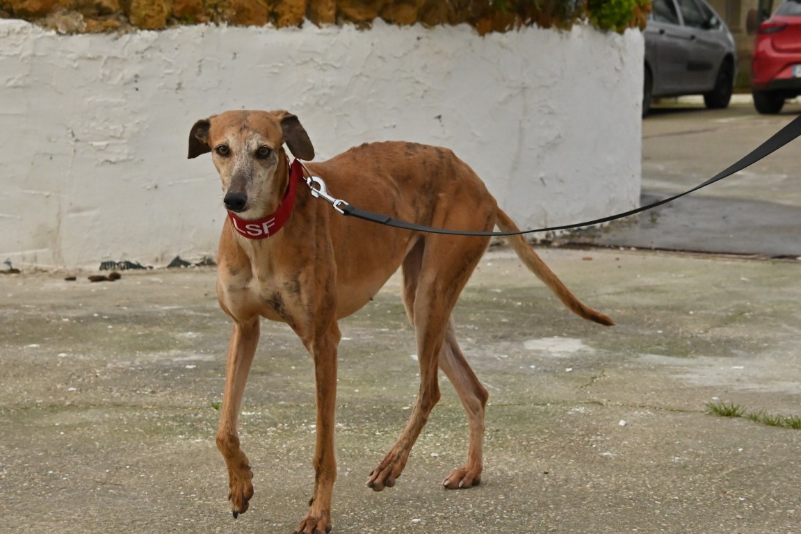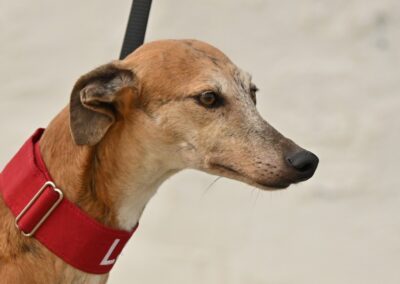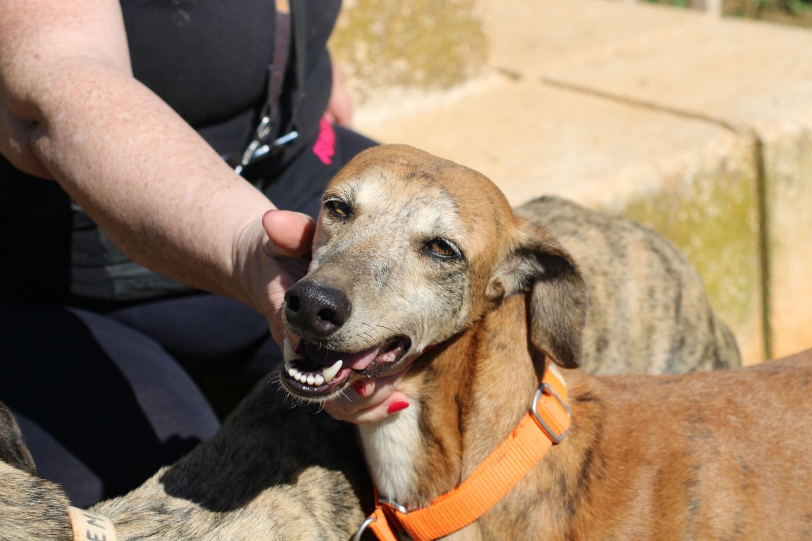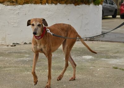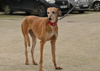 Mirabelle est une galga douce, sensible et pleine de gentillesse qui attend simplement une famille patiente et aimante pour commencer enfin sa vraie vie 💛.