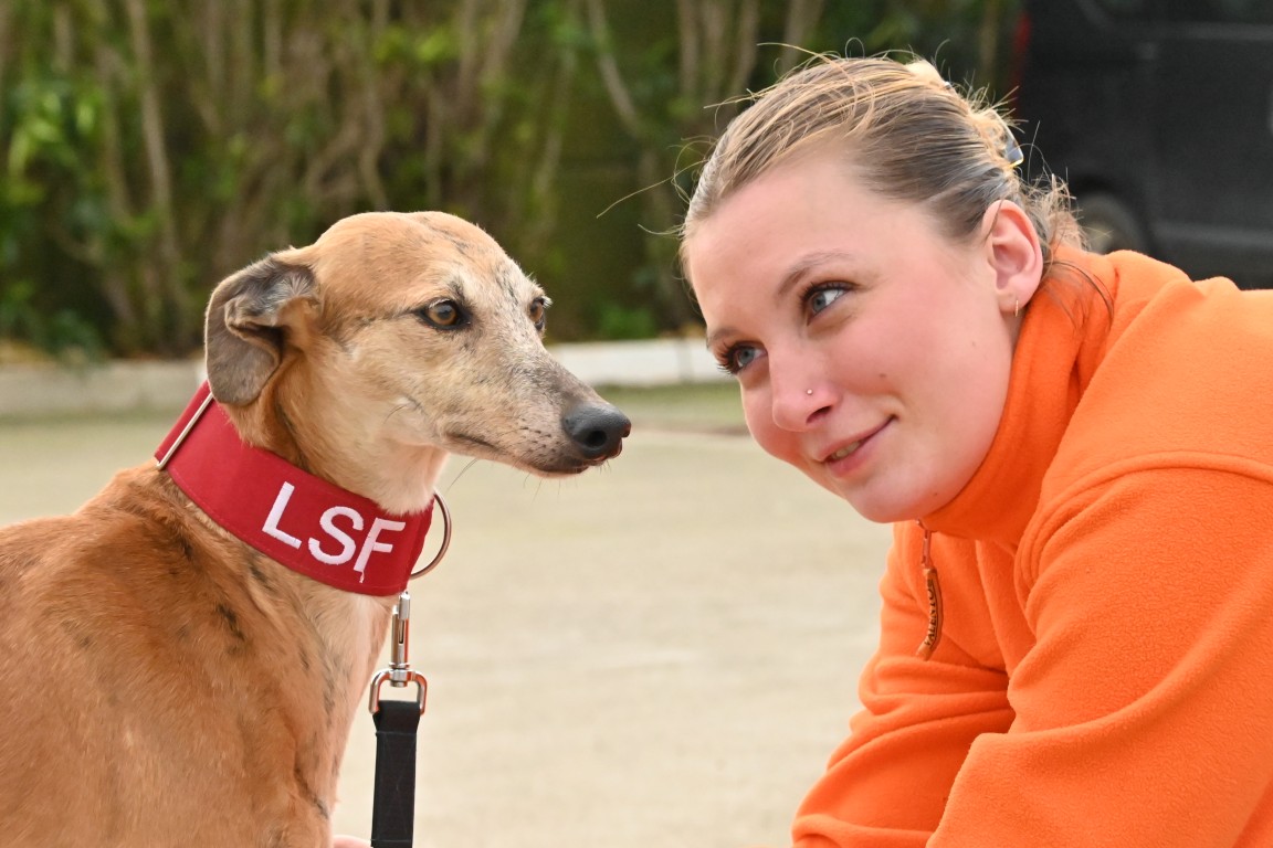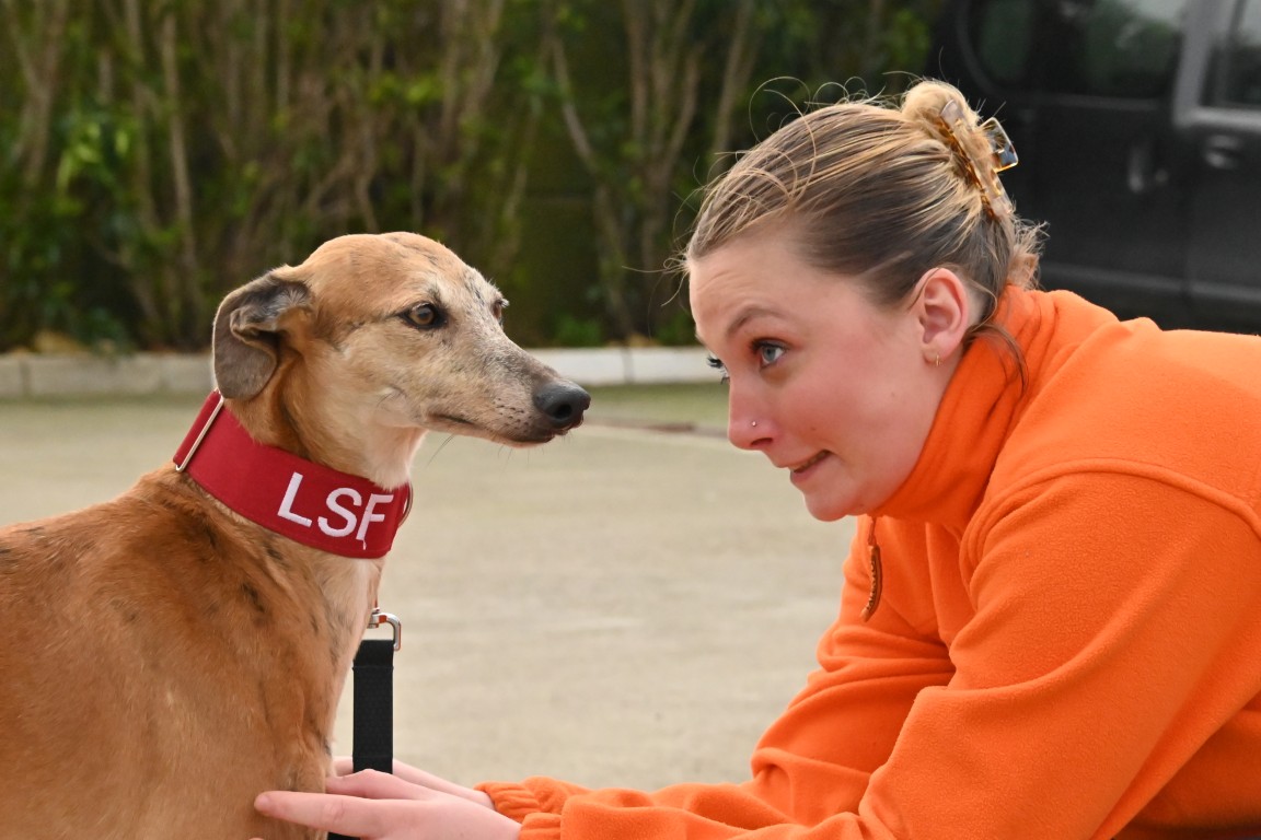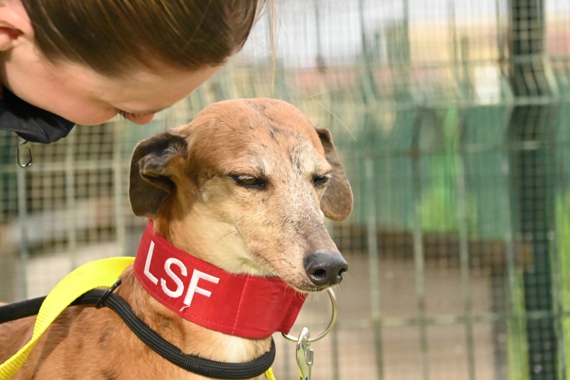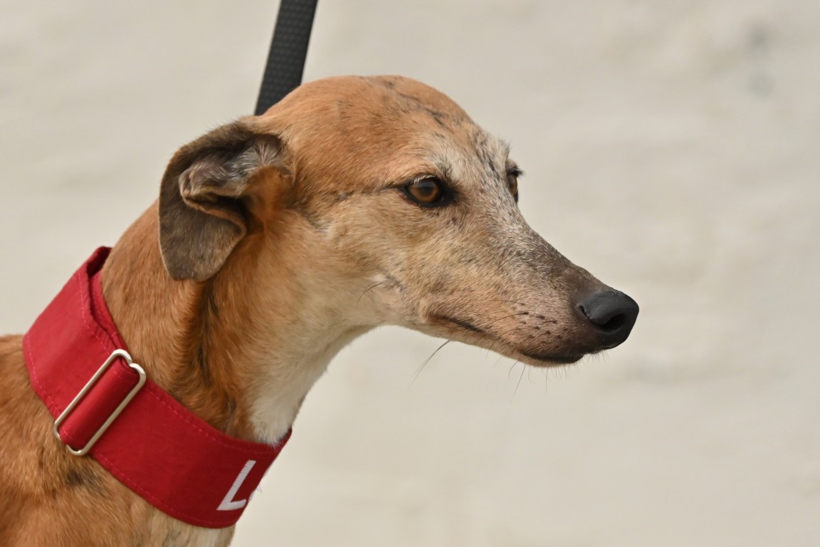 Mirabelle est une galga douce, sensible et pleine de gentillesse qui attend simplement une famille patiente et aimante pour commencer enfin sa vraie vie 💛.