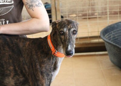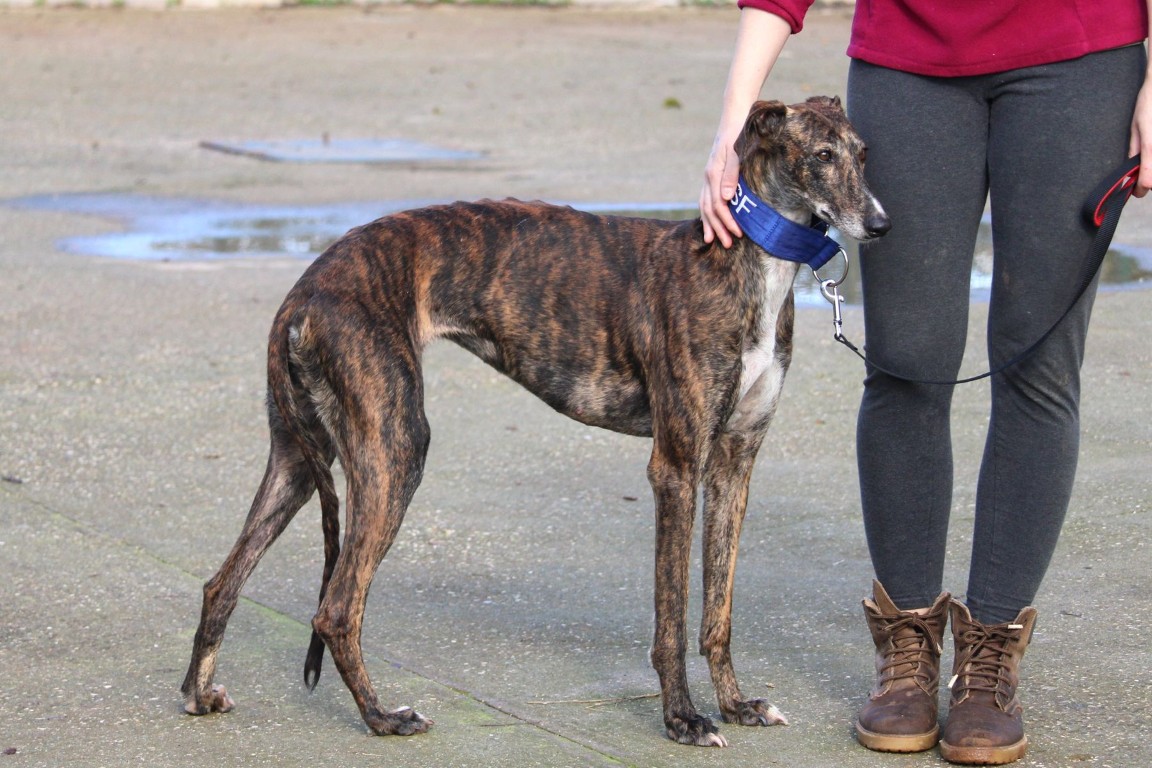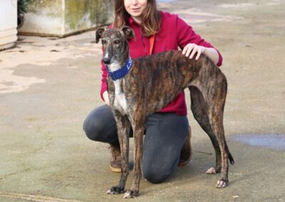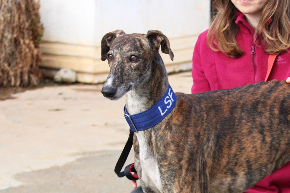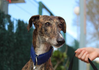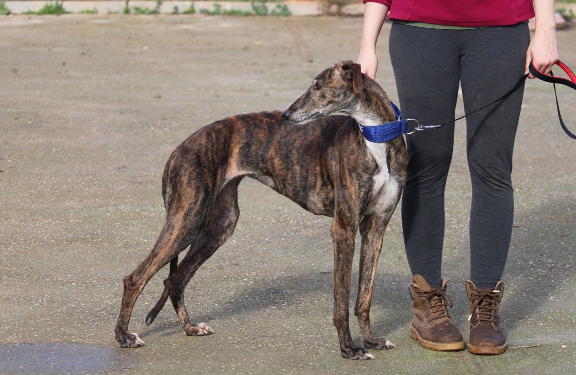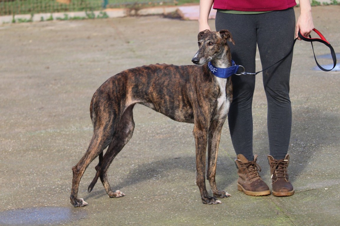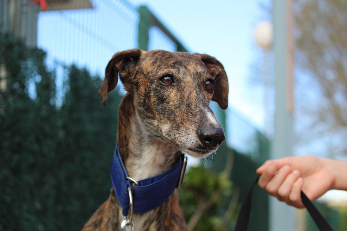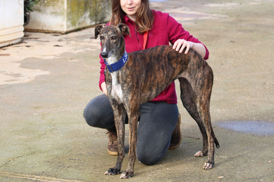 Mireia est une magnifique galga bringée, au regard incroyablement expressif, capable de dire mille choses sans un mot.