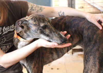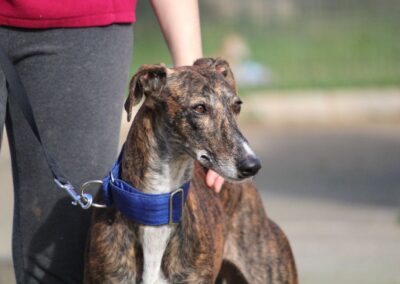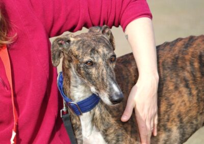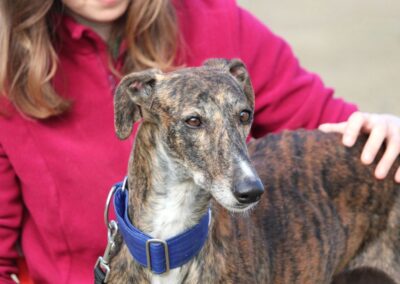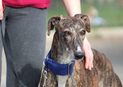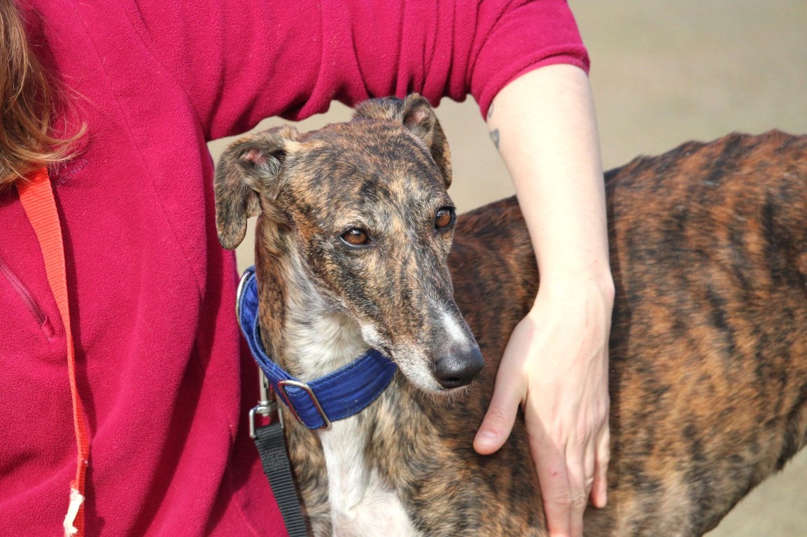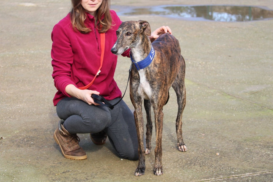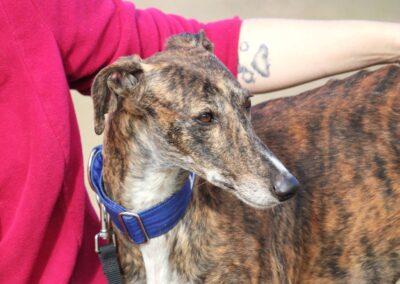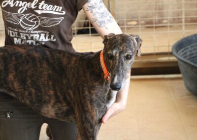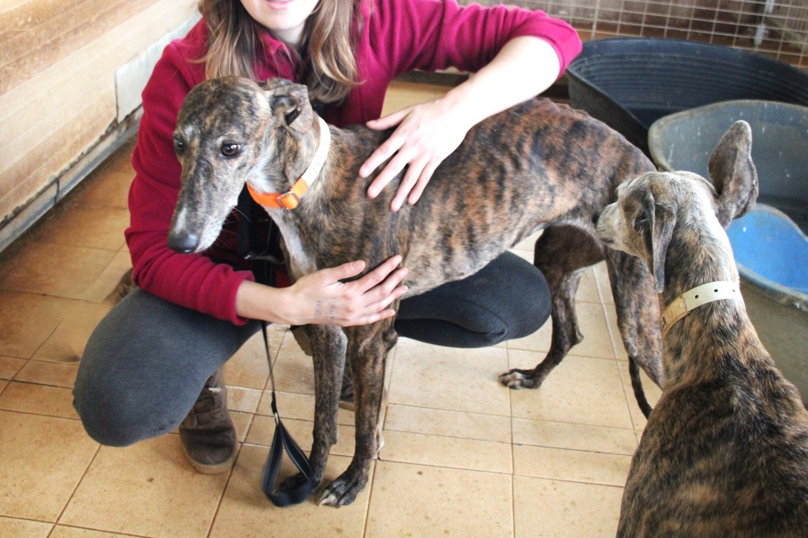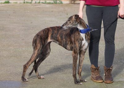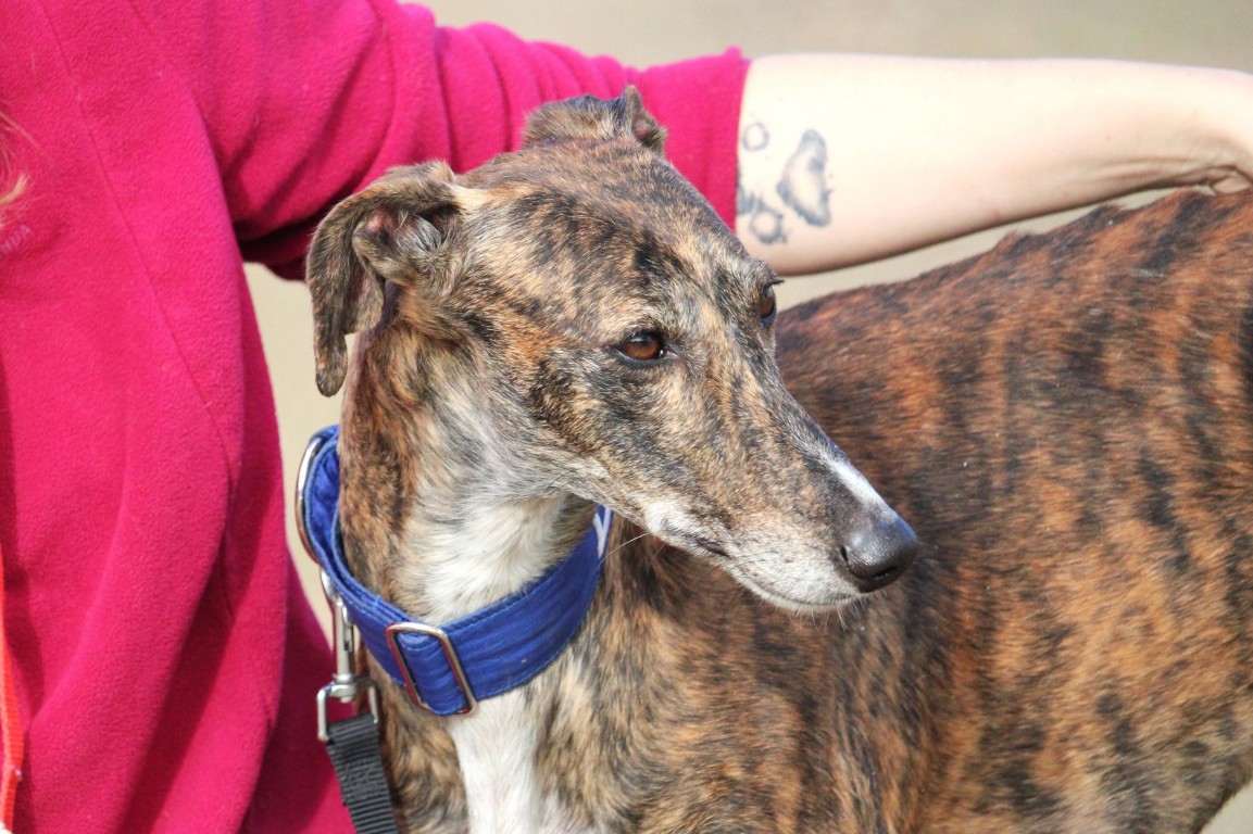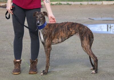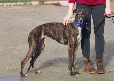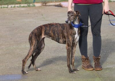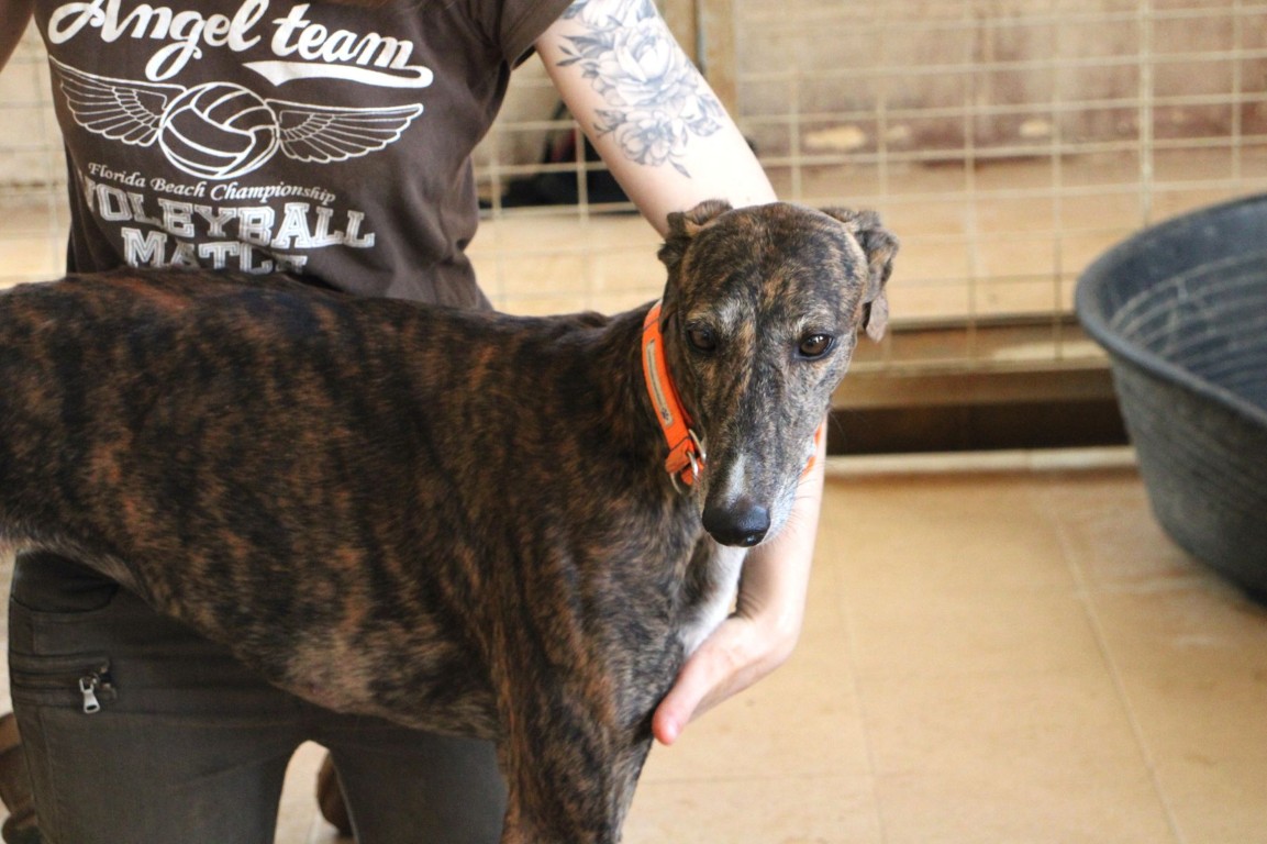 Mireia est une magnifique galga bringée, au regard incroyablement expressif, capable de dire mille choses sans un mot.