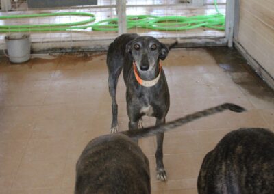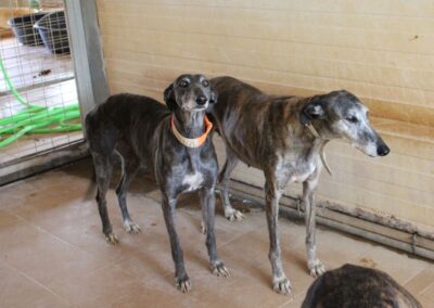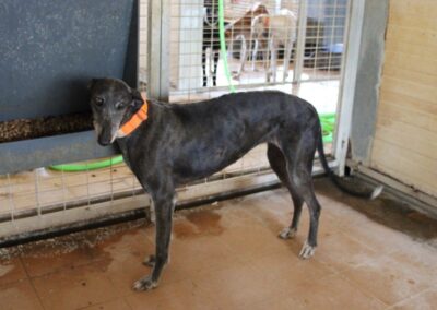Comme beaucoup de galgas en Espagne, Mona a très probablement été utilisée par son galguero pour la reproduction. Le destin des femelles reproductrices est souvent terrible… Elles vivent bien souvent enfermées dans des gourbis infâmes, dans l’obscurité, sans jamais voir la lumière du jour. 🌑