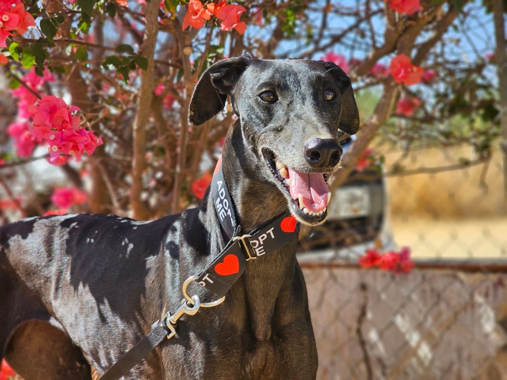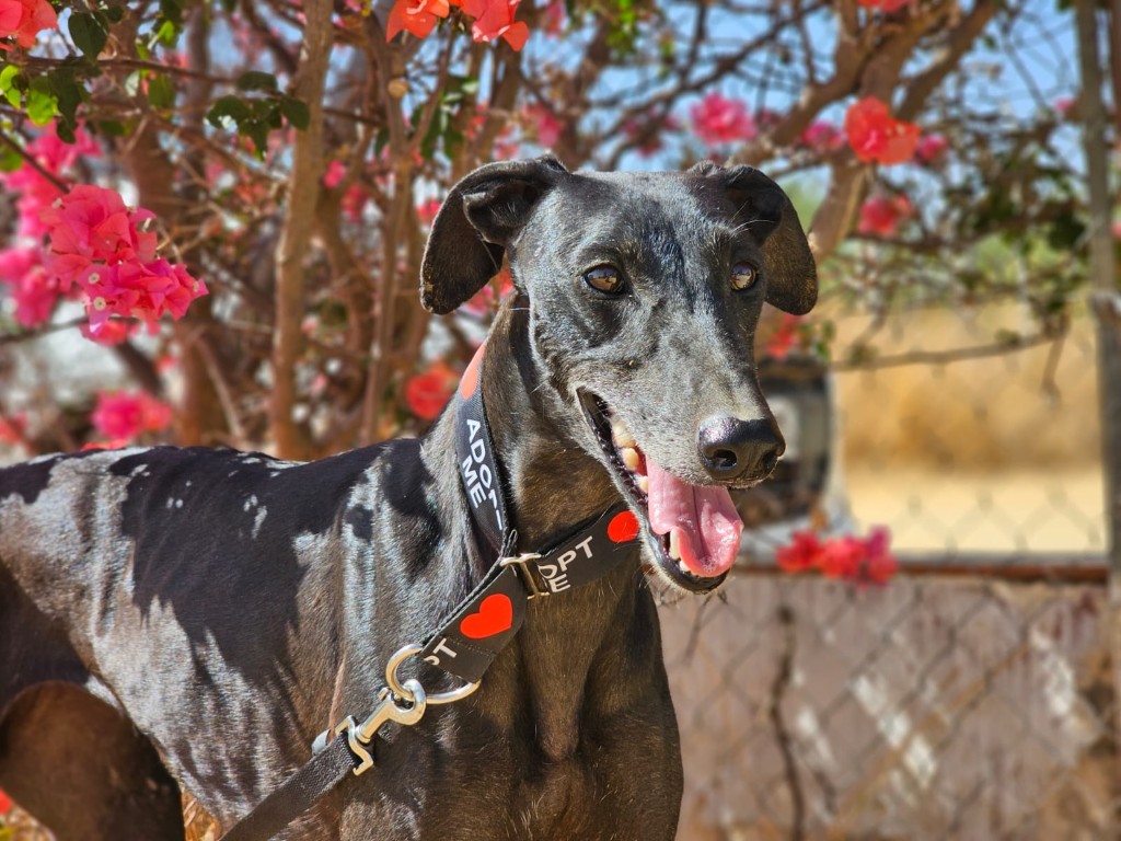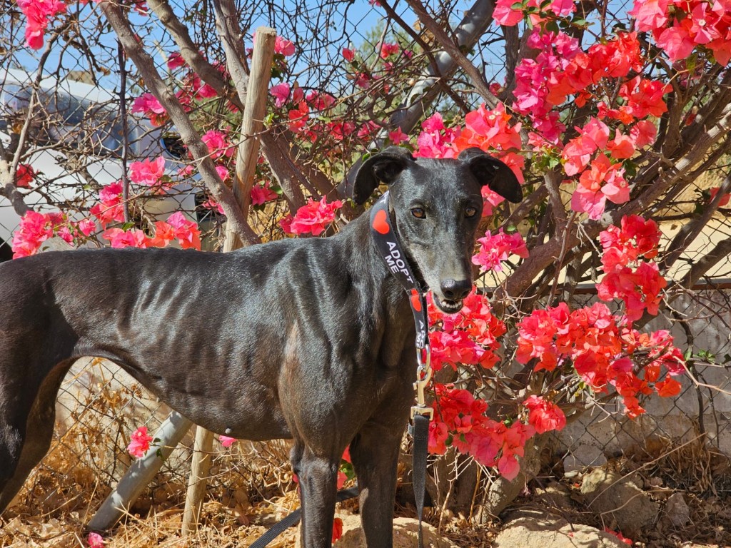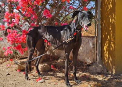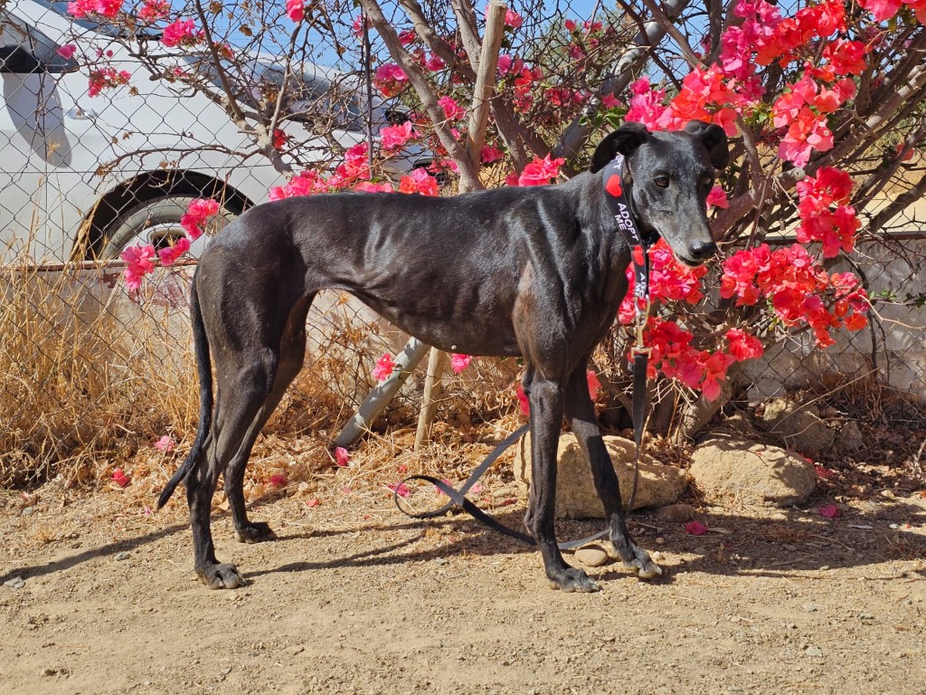 Morita est une magnifique galga noire, née en mai 2022, arrivée au refuge de Carmona (Espagne) en mai 2025.