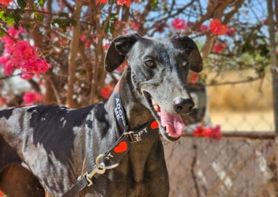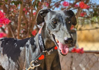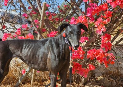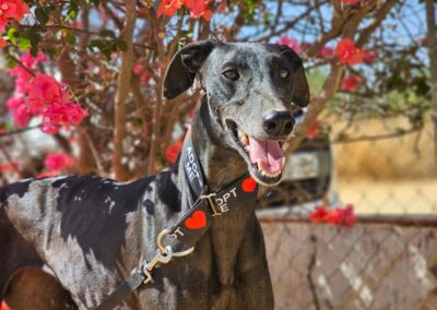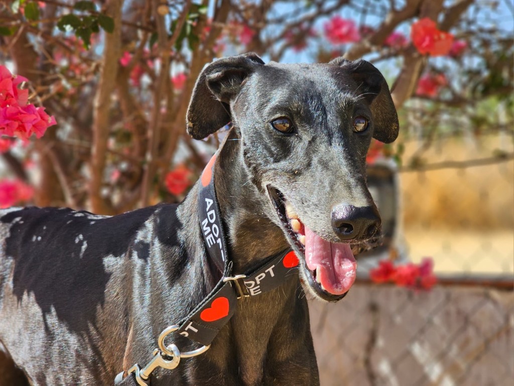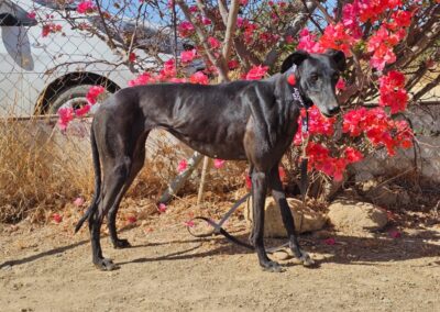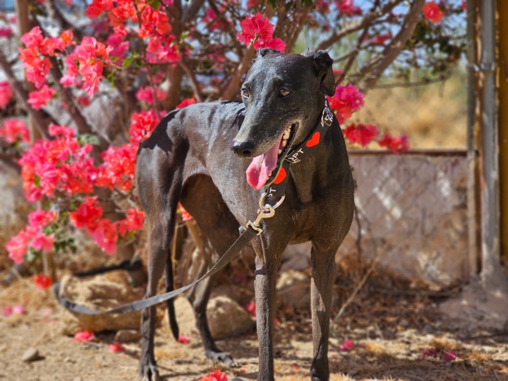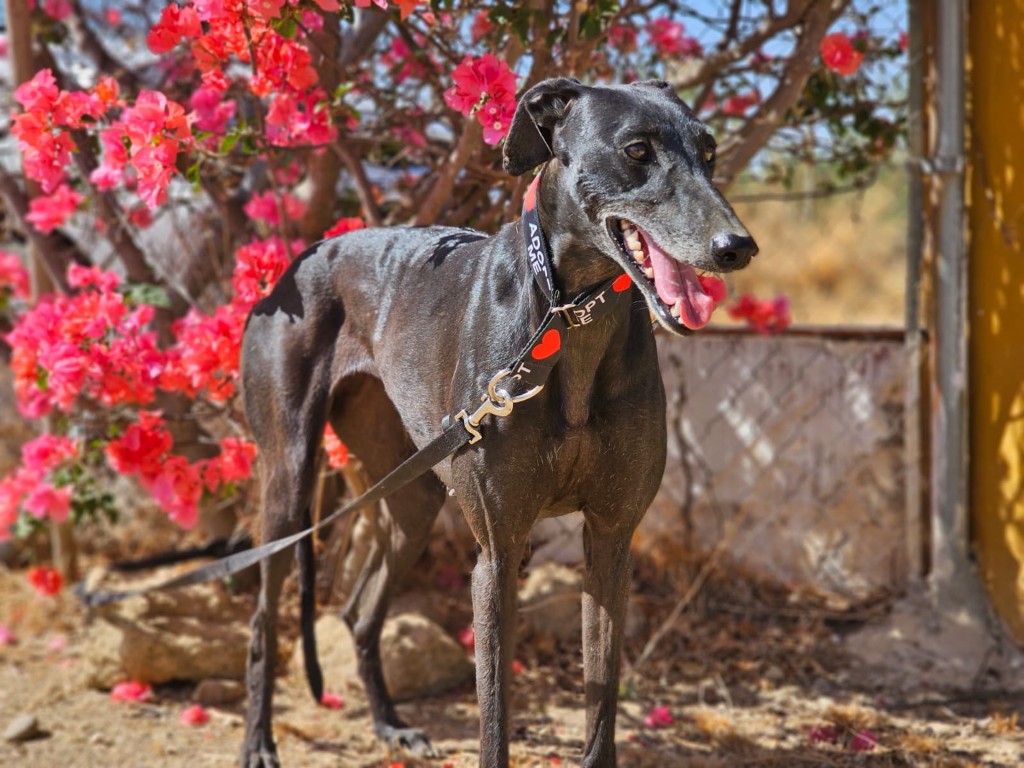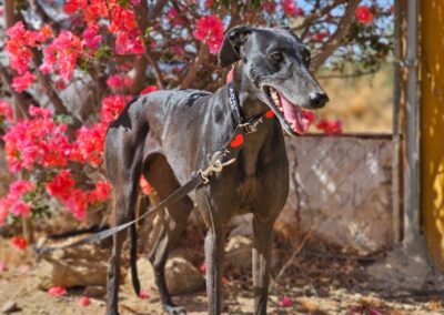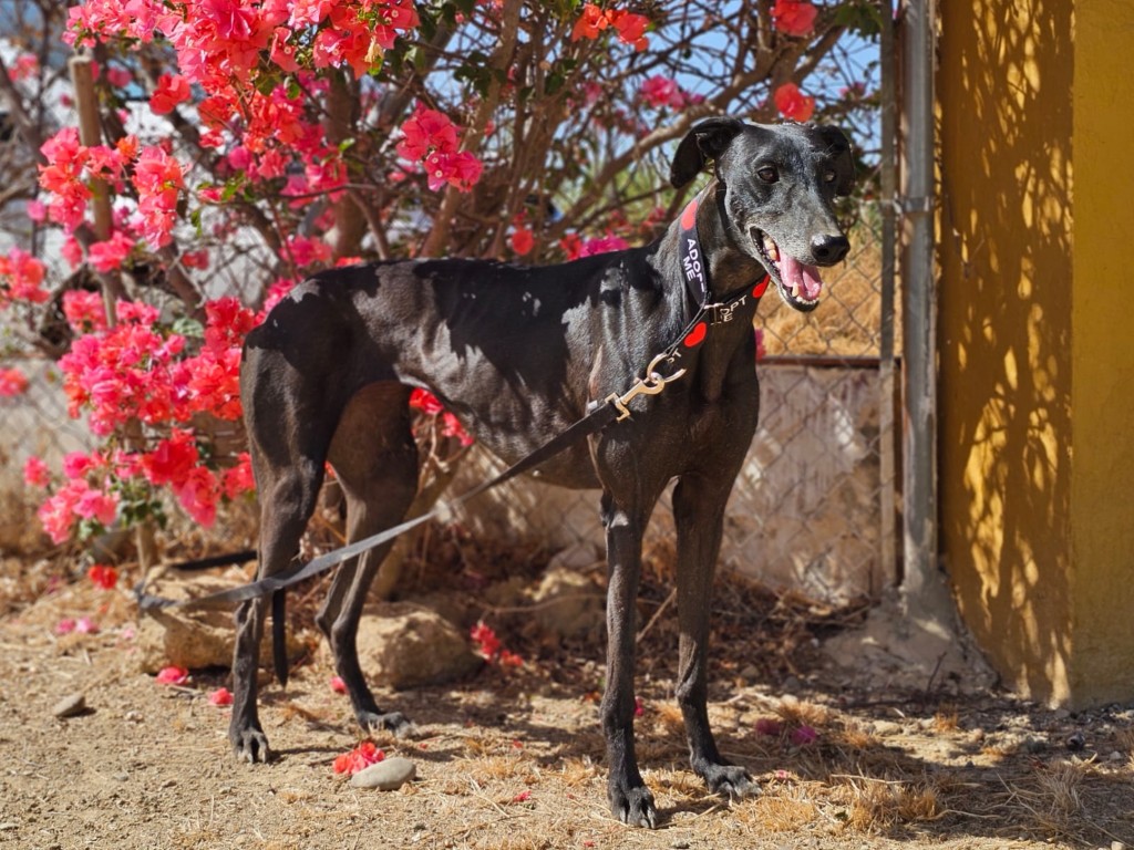 Morita est une magnifique galga noire, née en mai 2022, arrivée au refuge de Carmona (Espagne) en mai 2025.
