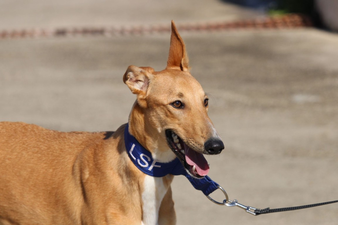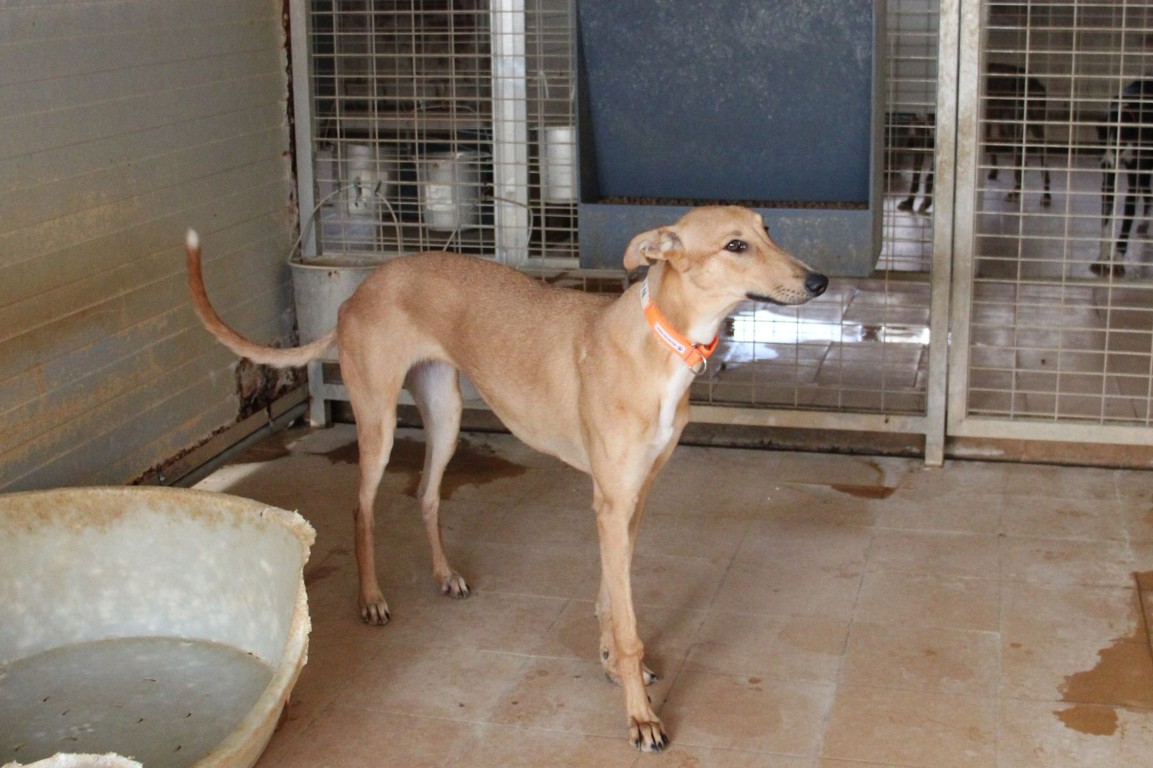 Attention, préparez-vous… Voici Nanny, la galga sable la plus fun de tout le refuge 🤭 !