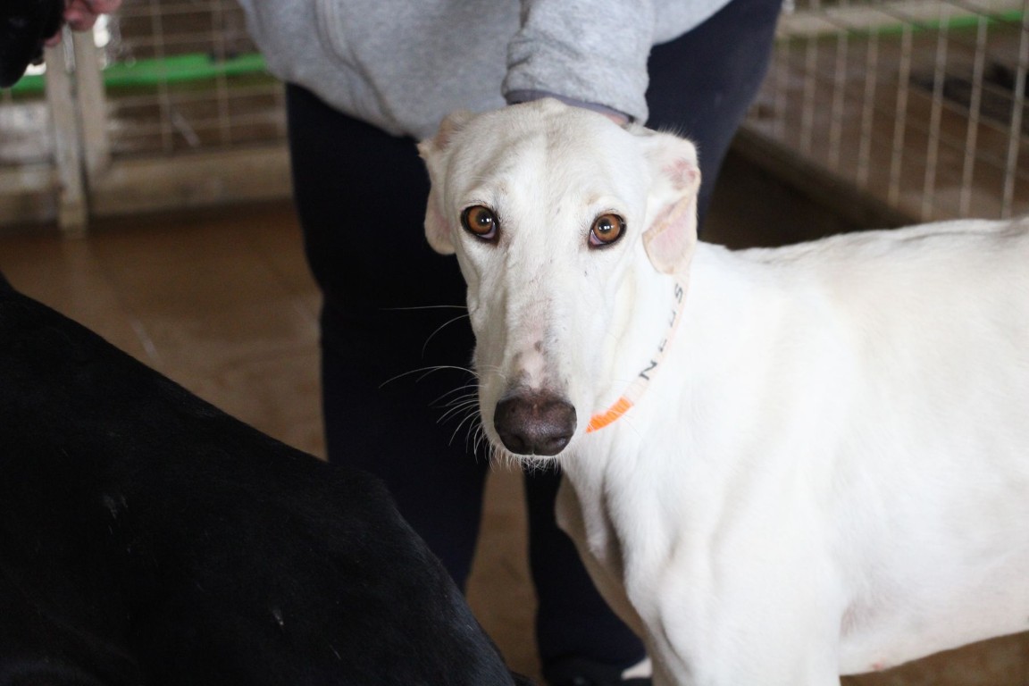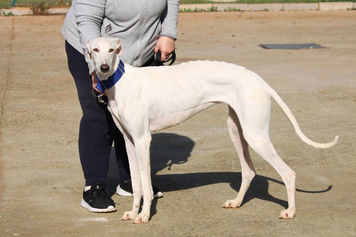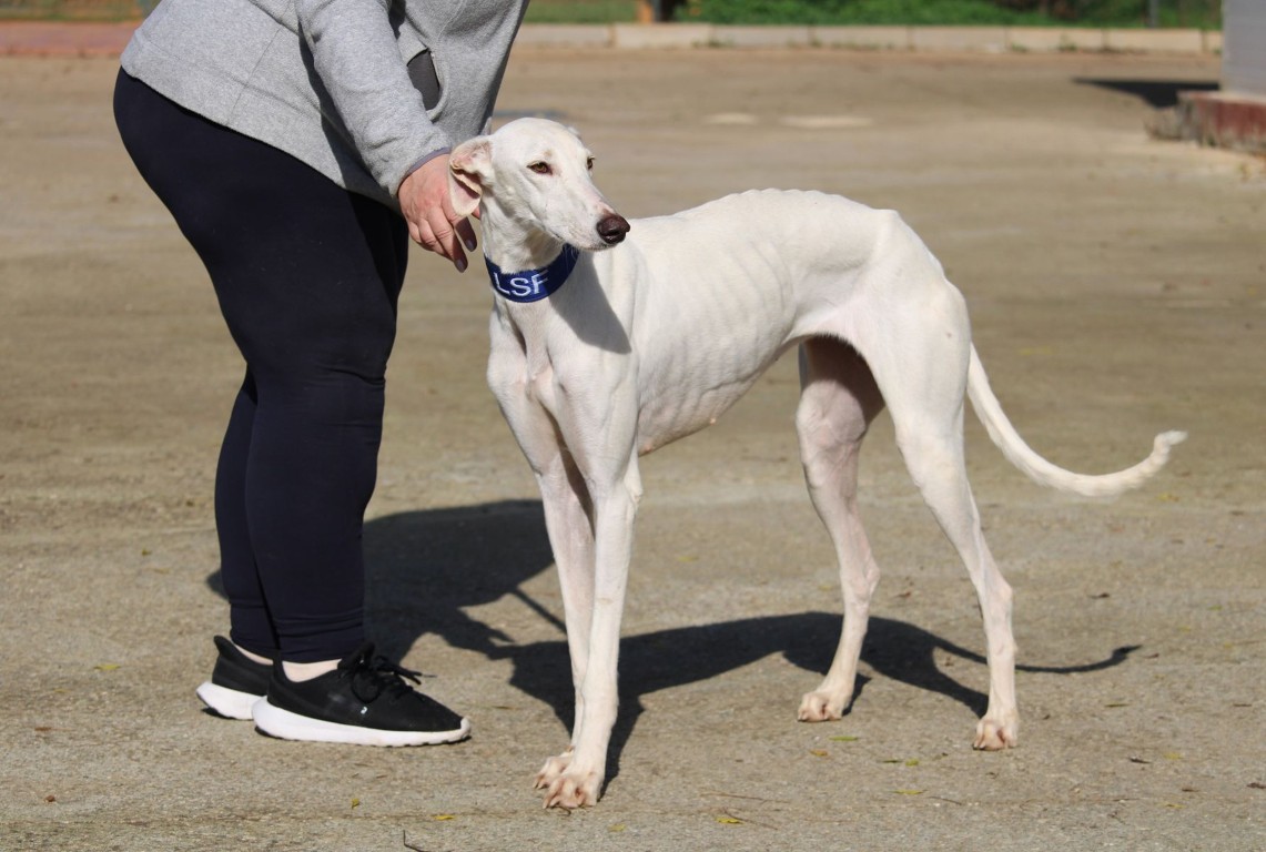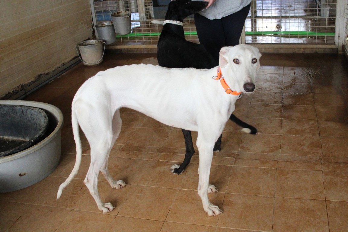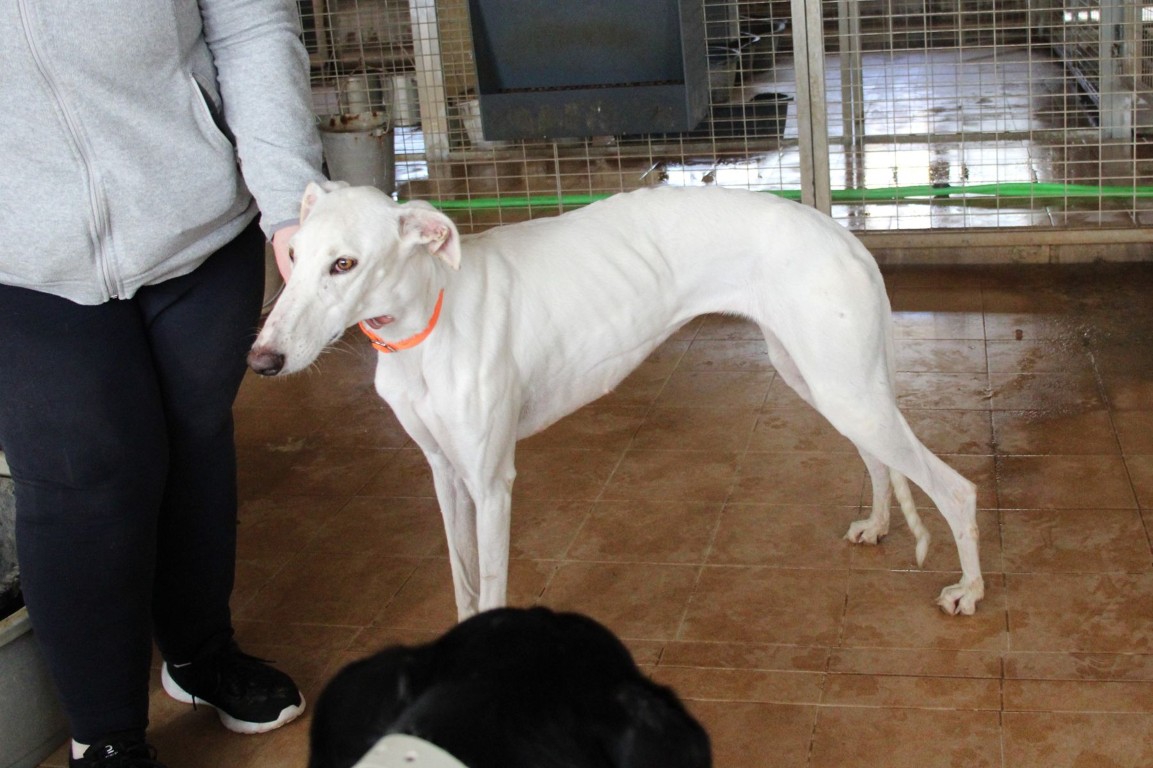 NEUS est une magnifique galga toute blanche, une vraie rareté 🤍