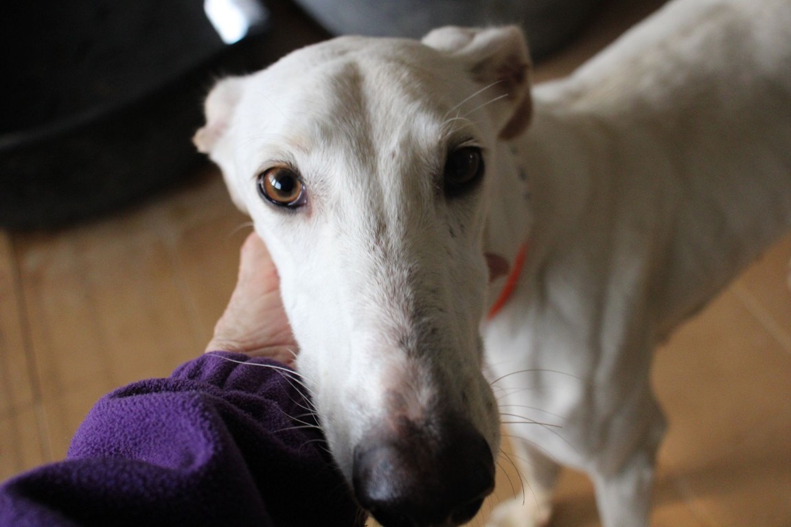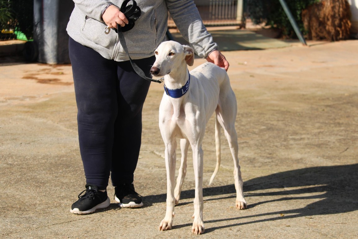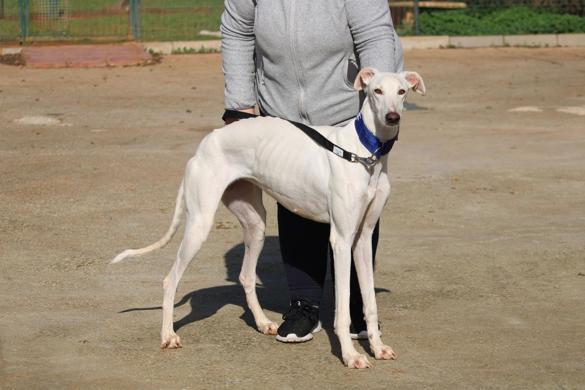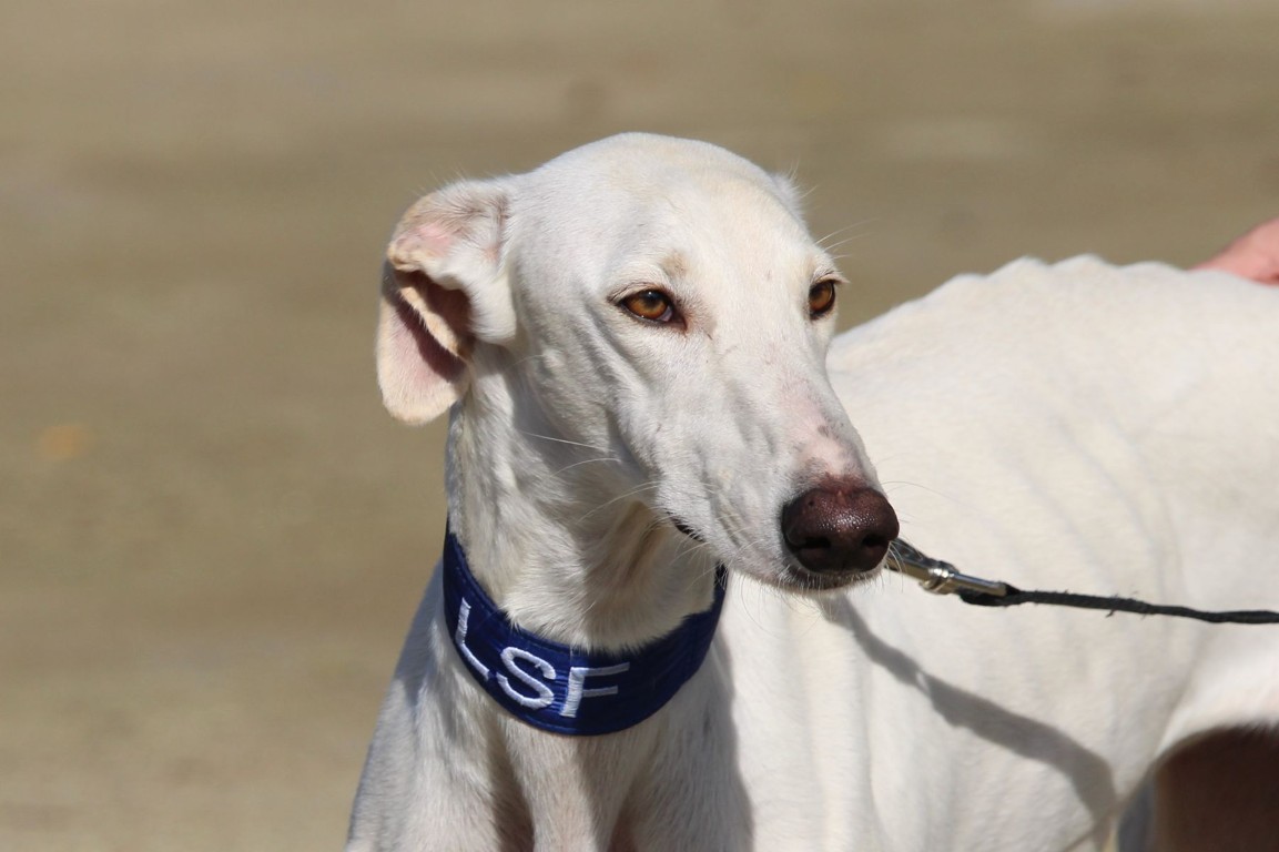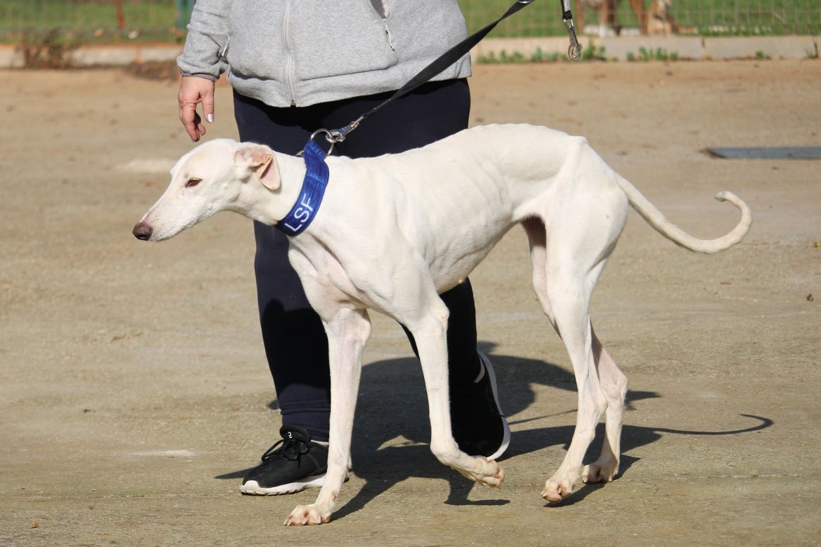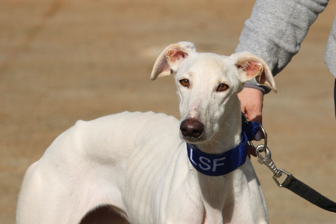 NEUS est une magnifique galga toute blanche, une vraie rareté 🤍
