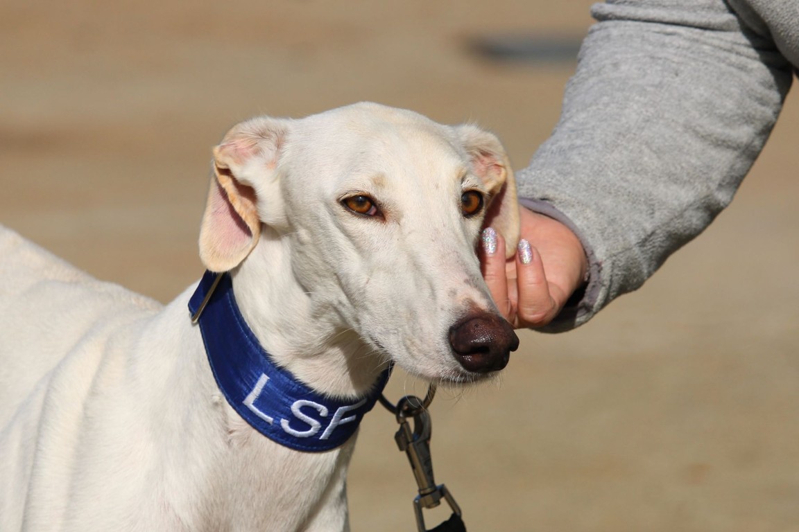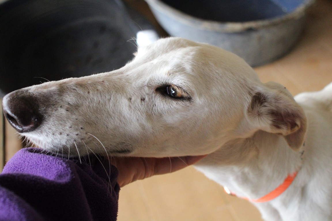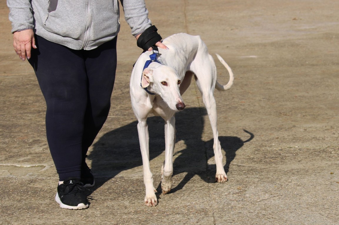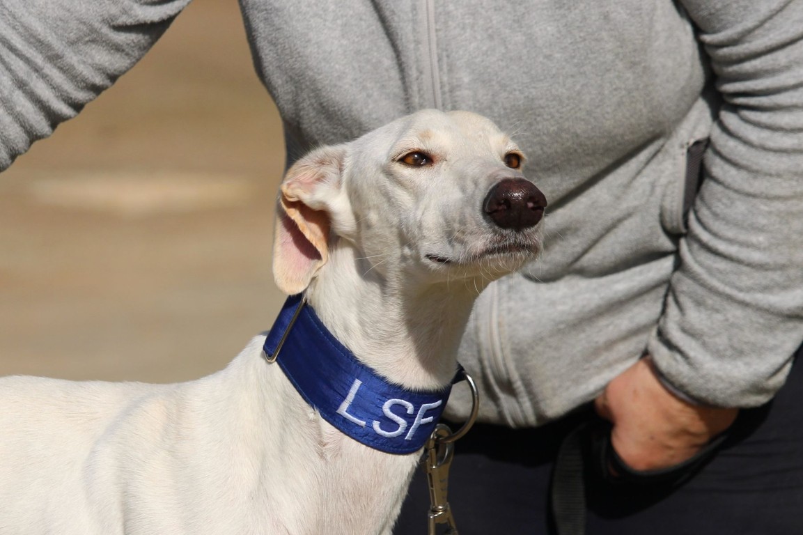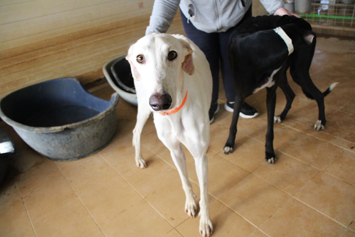 NEUS est une magnifique galga toute blanche, une vraie rareté 🤍