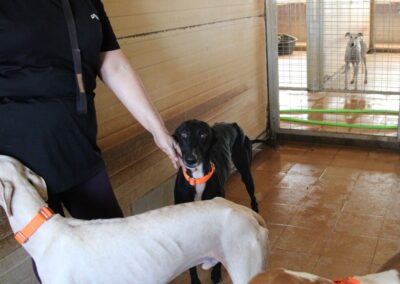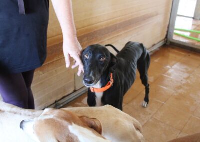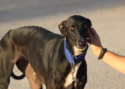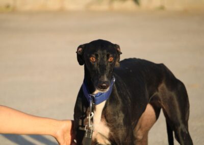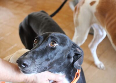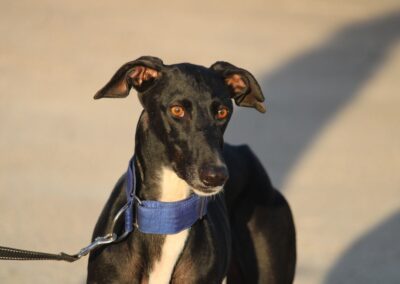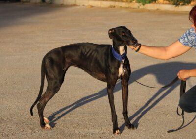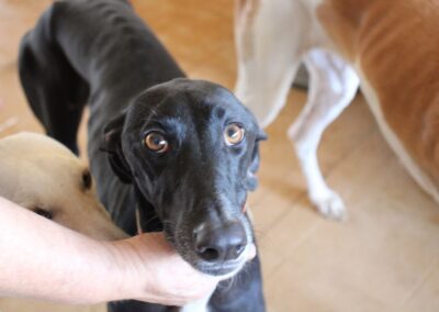NOCHE est une galga très spéciale… Elle est affectueuse, tendre et délicate. Elle vit en parfaite harmonie avec les autres chiens et adore la compagnie de ses congénères 🐶. Elle marche parfaitement en laisse, reste très proche de l’humain et a un don particulier pour “parler” quand elle réclame des câlins 😄.