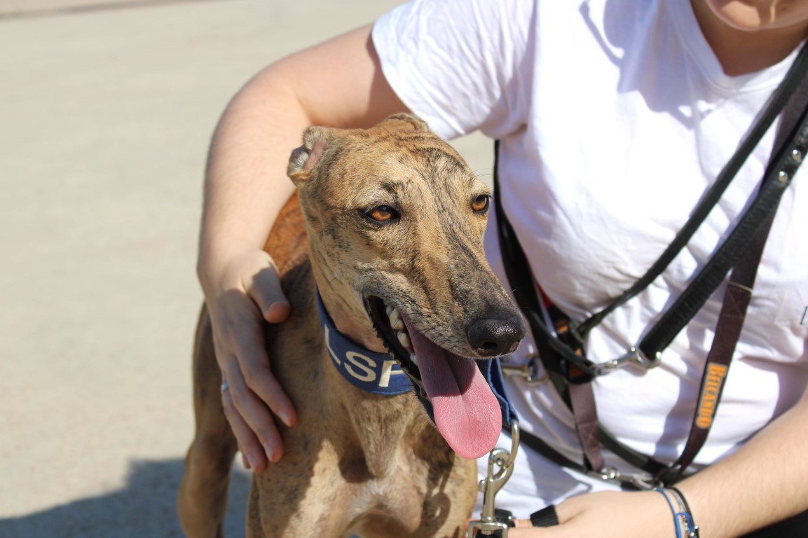 Elle a été abandonnée au refuge de la FBM avec 3 autres galgas avec lesquelles elle est très liée puisqu’elles sont sœurs.