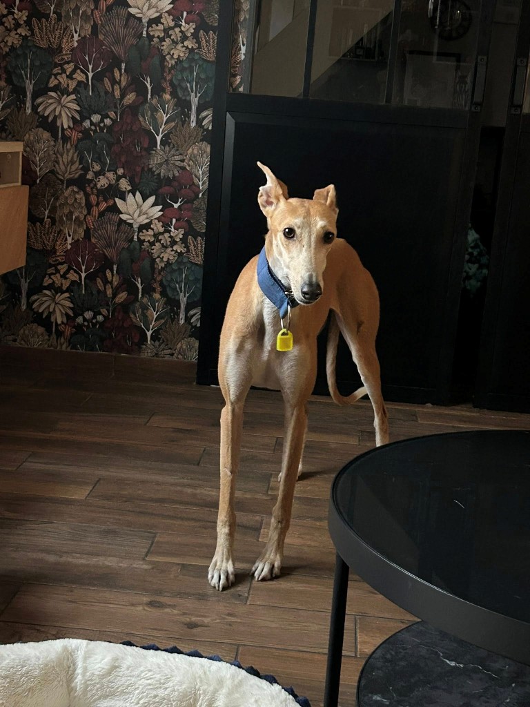 Pambi est une galga d’une douceur incroyable, calme, docile et pleine de tendresse 🐾. Elle est arrivée en France en décembre 2024, pleine d’espoir et de rêves d’une vie heureuse auprès d’une famille aimante. Mais malheureusement, la vie a été injuste avec elle… 😢