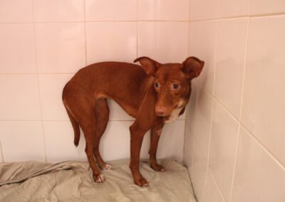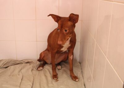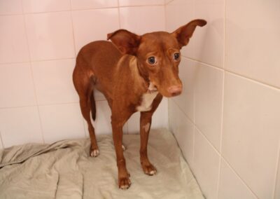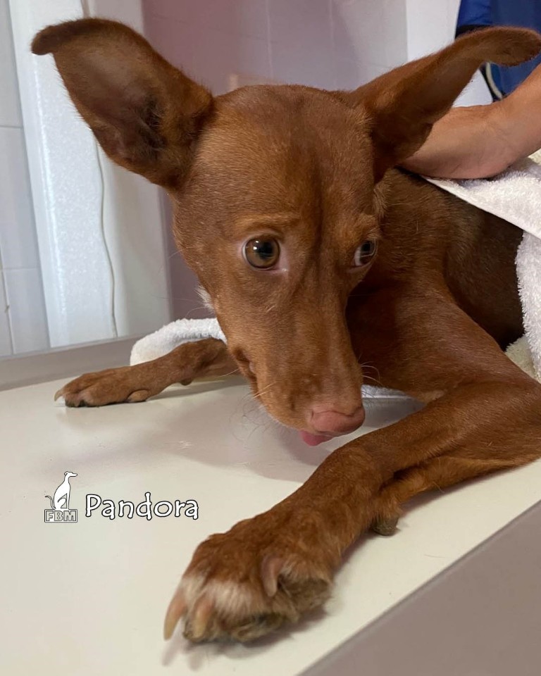 Pandora est une podenca craintive, marquée par l’absence de tout contact bienveillant avec l’humain. Sa peur est devenue sa seule arme pour survivre. Pour elle, nous cherchons une famille prête à lui offrir patience, respect et amour. Elle aura besoin d’un environnement calme, avec la présence rassurante d’un autre chien sociable de sa taille qui saura lui montrer le chemin du bonheur. Un jardin bien clos sera indispensable à son équilibre.