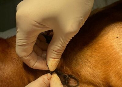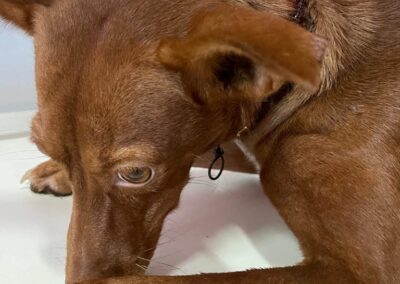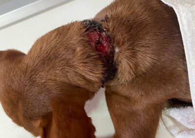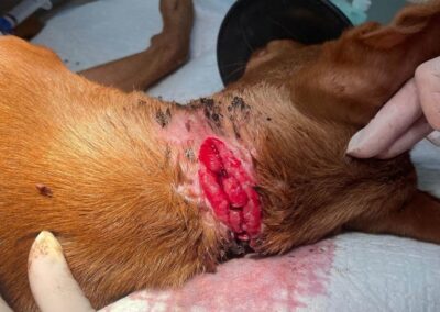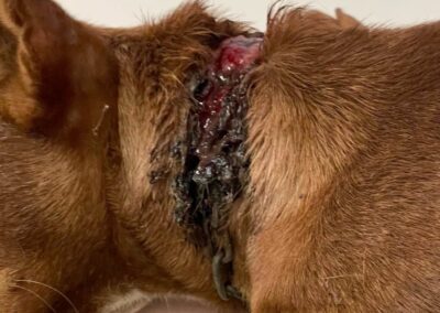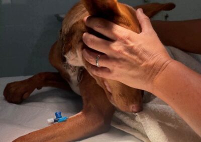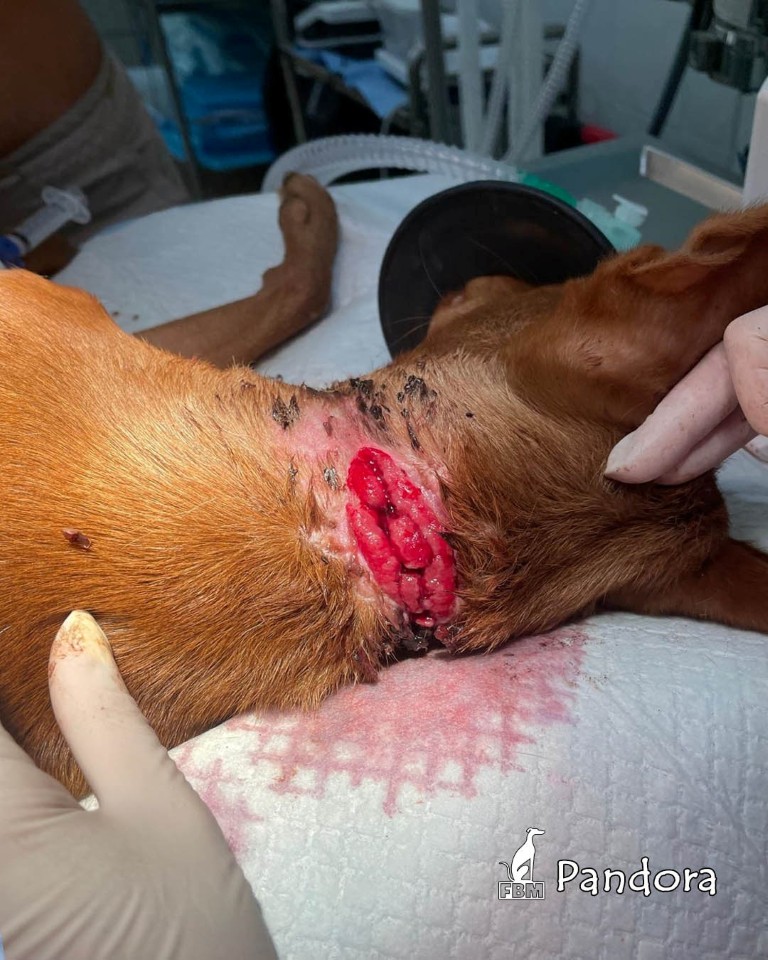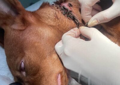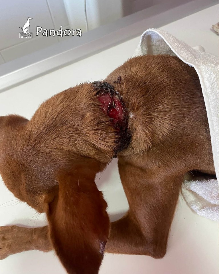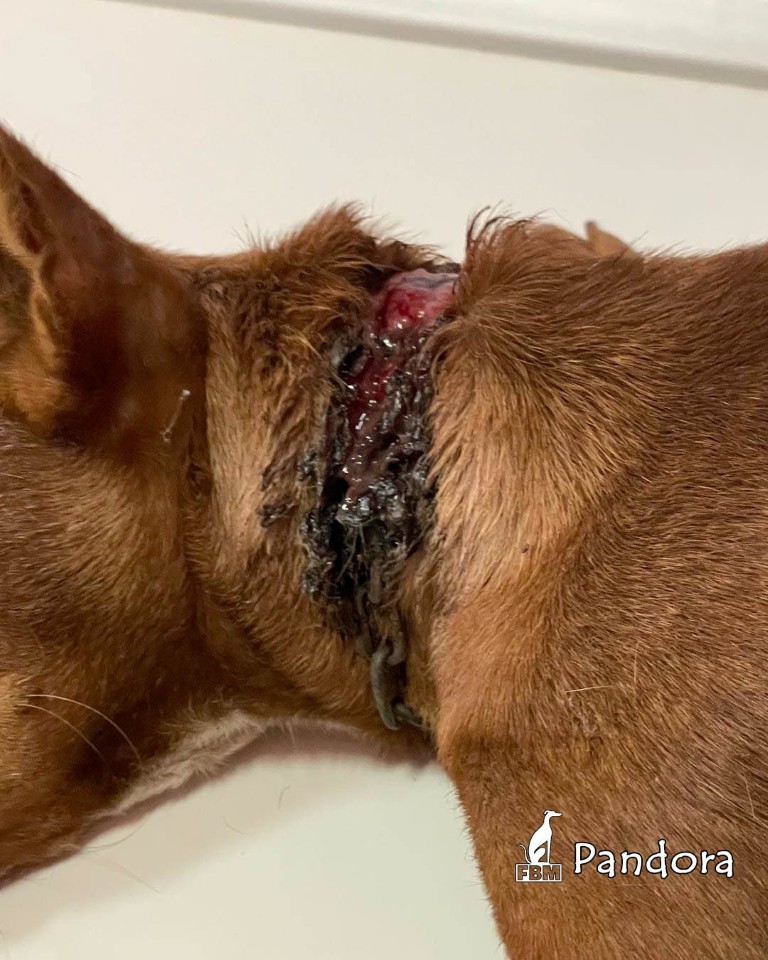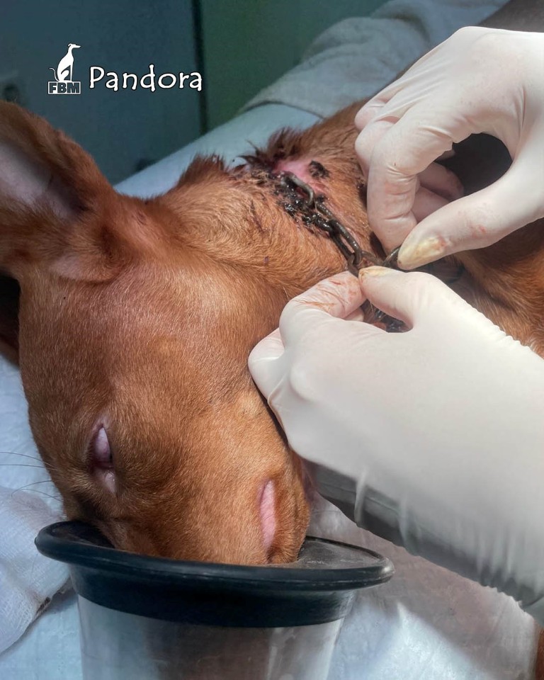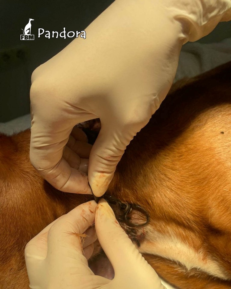 Grâce à notre refuge partenaire de la FBM, Pandora a été immédiatement prise en charge. Les vétérinaires, avec une infinie délicatesse, ont retiré la chaîne qui menaçait sa vie. Ce geste, si libérateur, marque la fin de son enfer mais aussi le début d’un long chemin vers la guérison.