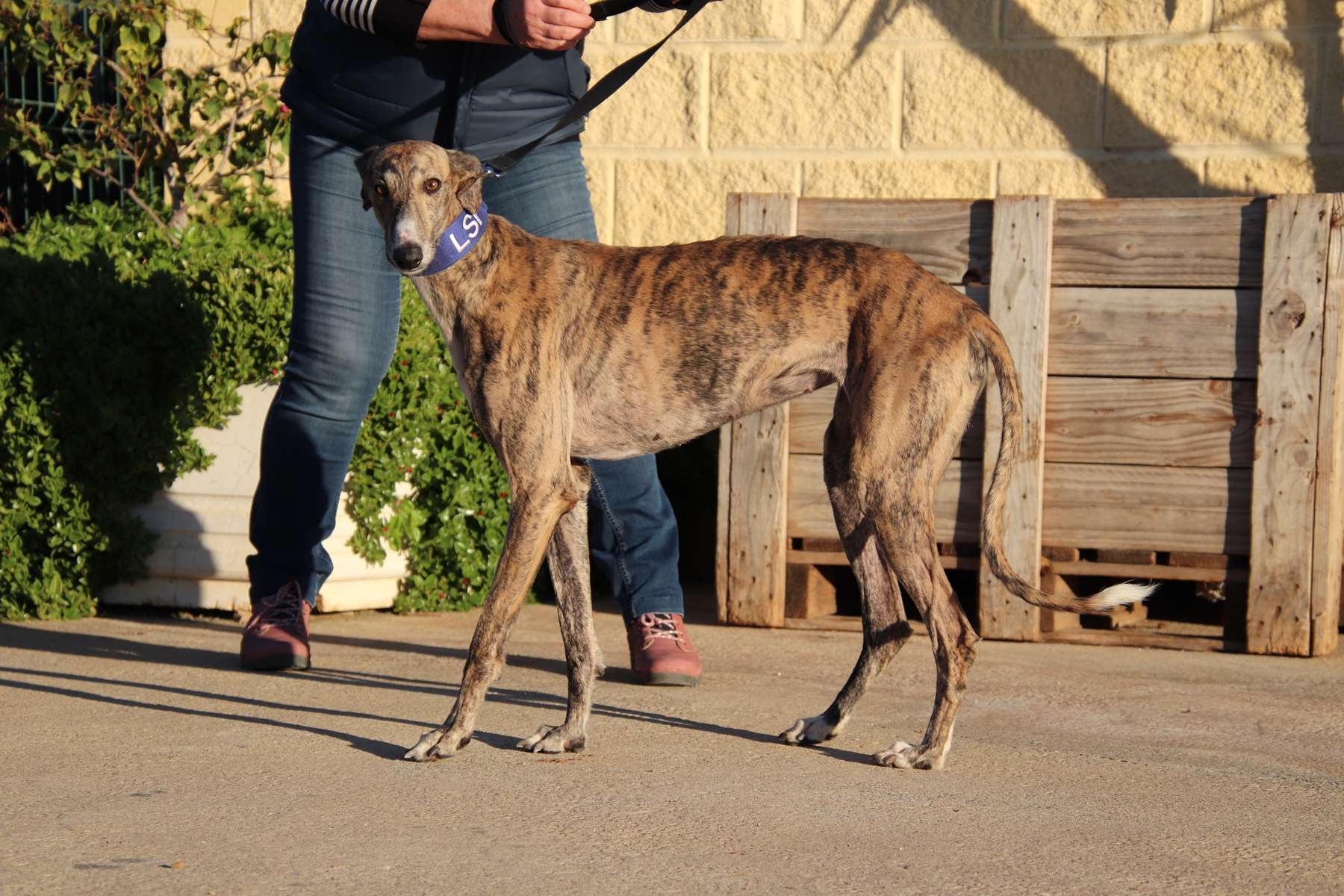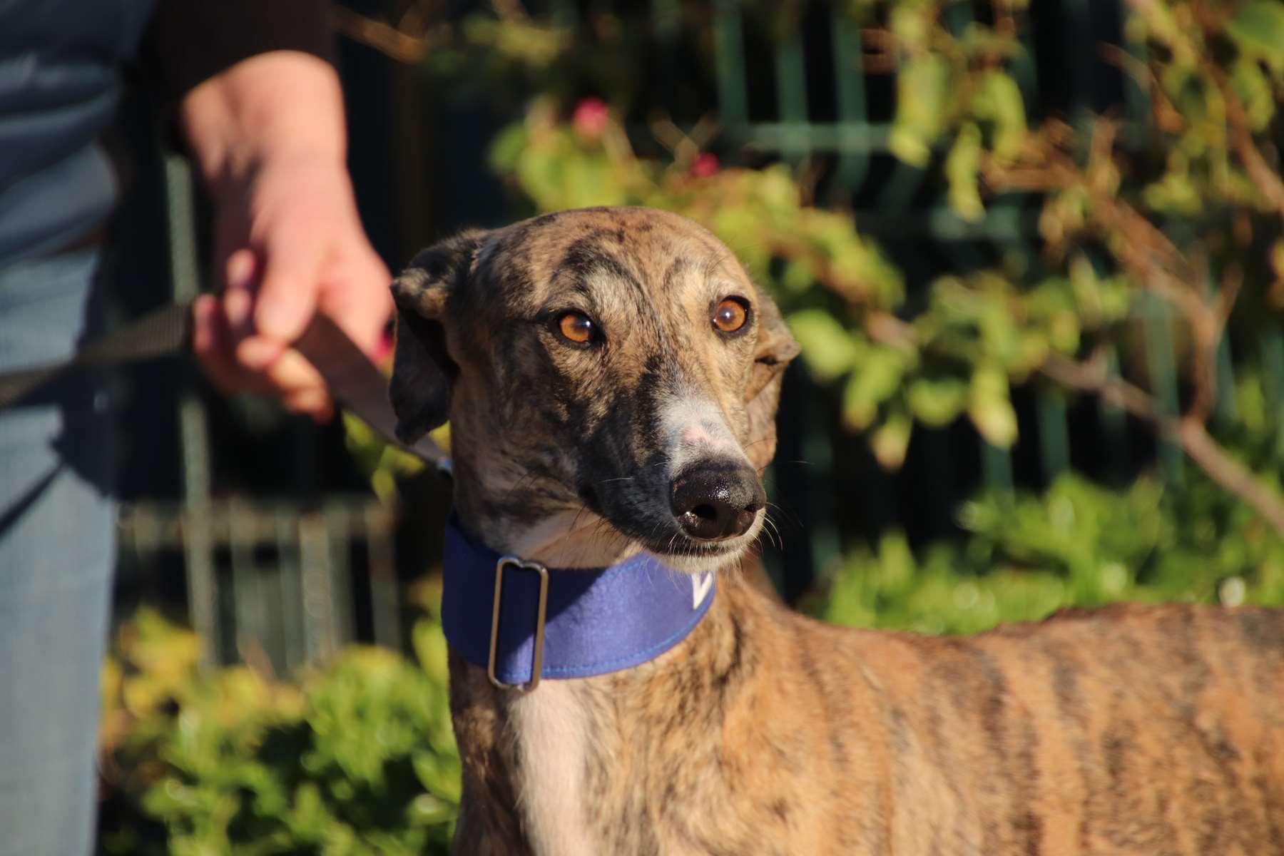 Voici Phoebe, elle aussi cédée par son galguero pendant que nous étions sur place à la FBM. Une chanceuse, quelque part, comme tous ses congénères , « déposés » comme des colis par leurs galgueros. C’est le plus beau cadeau qu’ils peuvent leur faire ! Qui dit « cédé(e) », est prometteur d’une vie meilleure ! Phoebe a deux ans et demi, elle est sociable, belle comme un cœur, fière, avec un regard pénétrant. Égale à elle-même : à son arrivée, pendant la séance photo et après notre visite dans son box avant notre départ, à savoir nulle crainte de l’humain, avenante, se rapprochant des grilles et se laissant caresser sans appréhension. Comme tous : ils ont l’habitude de vivre en meute, et la cohabitation avec ses congénères se passe bien. Si vous voulez donner à Phoebe cette vie meilleure bien méritée, n’hésitez pas à remplir le formulaire de demande d’adoption en ligne, tout en sachant qu’elle aura besoin d’un congénère déjà présent et d’un terrain entièrement clôturé.
