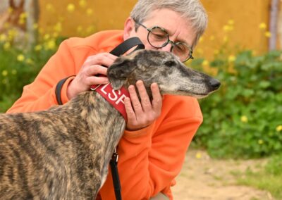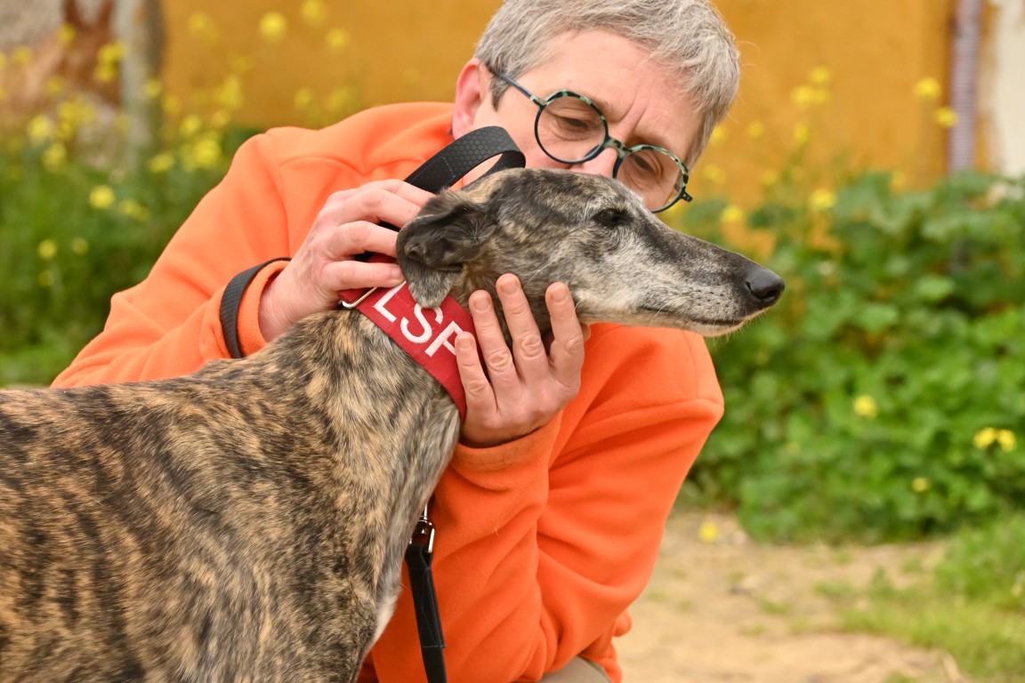 Dès son arrivée, Segadora s’est révélée être une galga sociable, très douce et délicate dans ses approches 🤗. Elle aime le contact, apprécie les caresses et se montre reconnaissante pour la moindre attention. Son regard tendre semble dire : « Je suis prête à aimer, prête à recommencer… » 💞