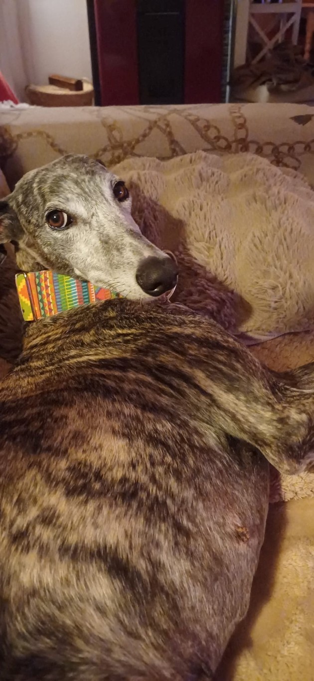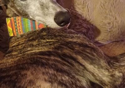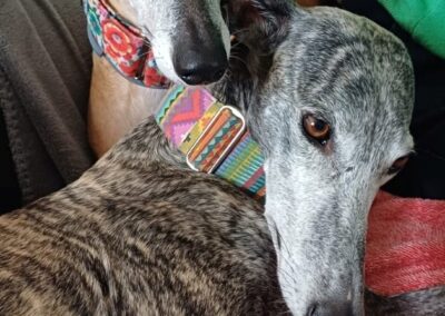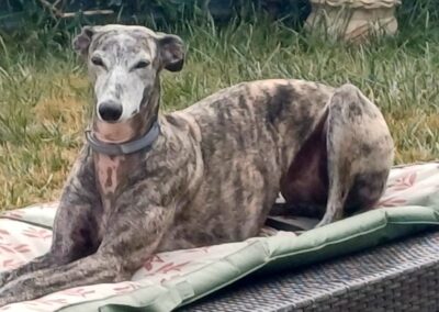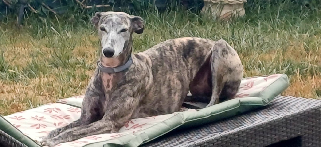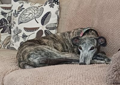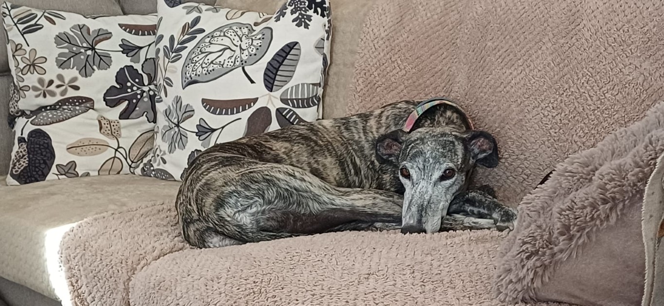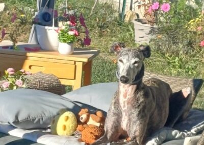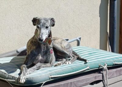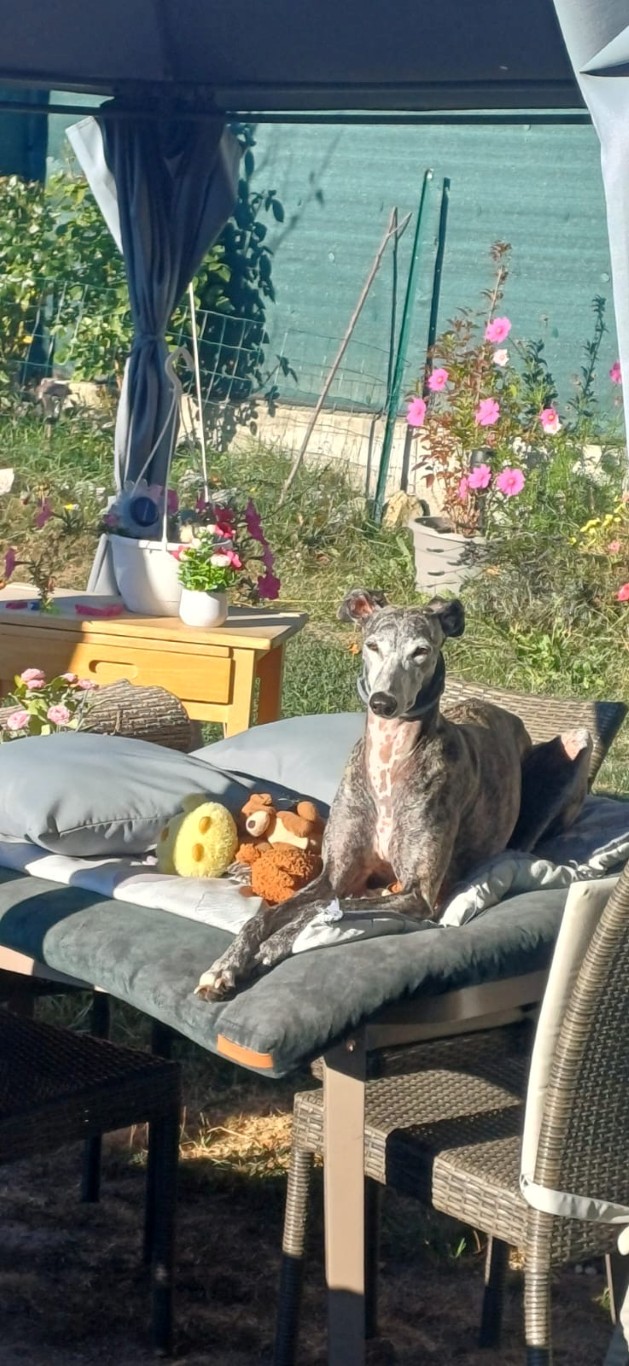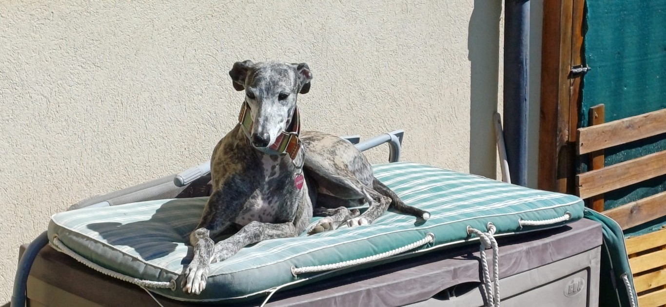 Chloé, est une adorable galga de petite taille qui a posé ses valises dans le Sud de la France après avoir connu le refuge de la FBM en Espagne.