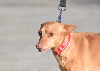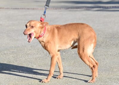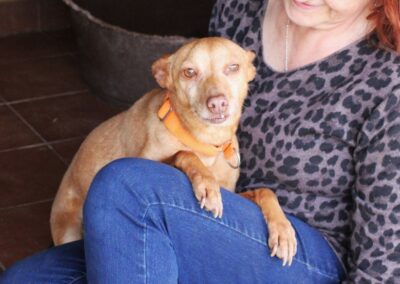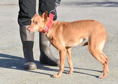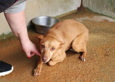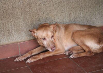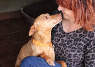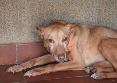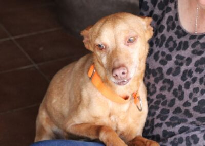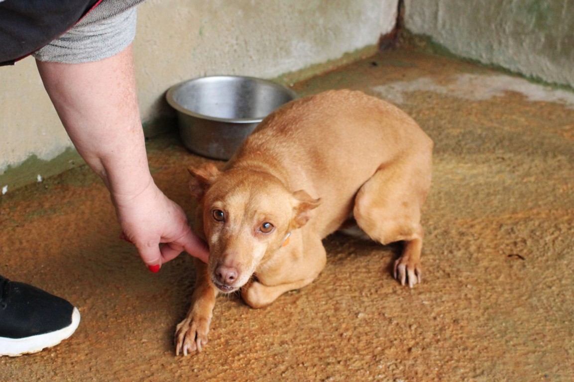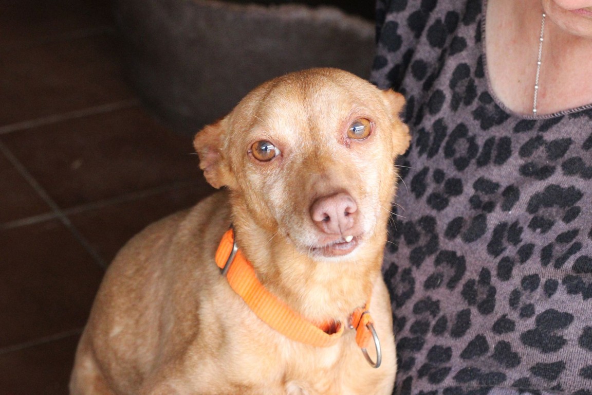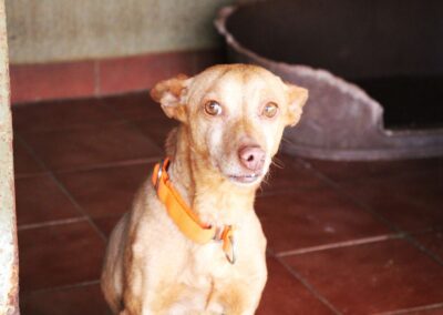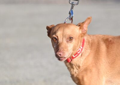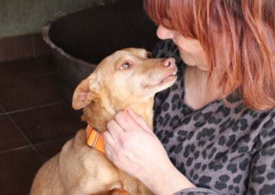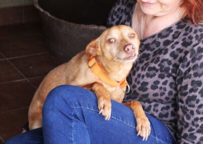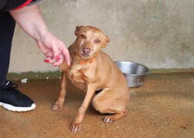 Je suis Sofi, une petite podenca couleur cannelle, et je suis arrivée au refuge de la FBM un jour où les bénévoles étaient présents.