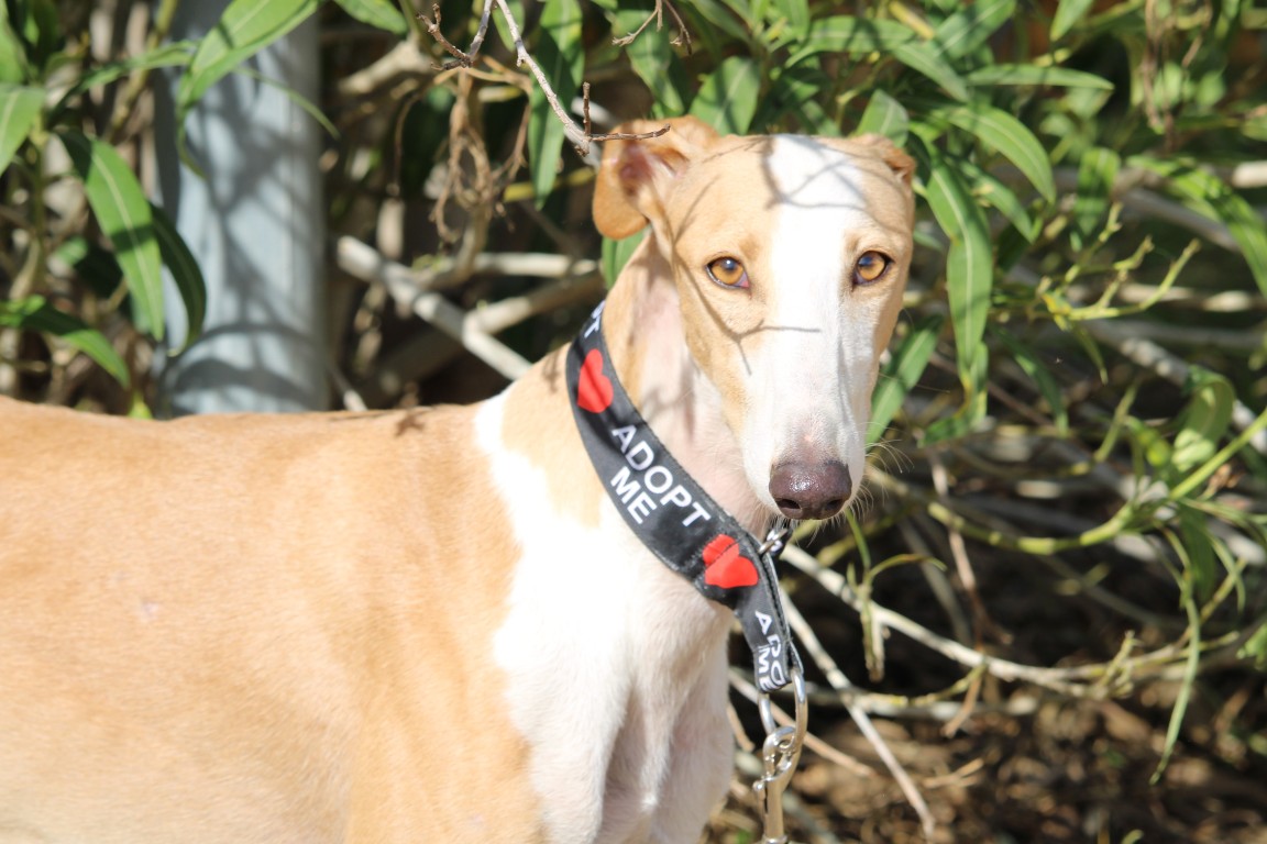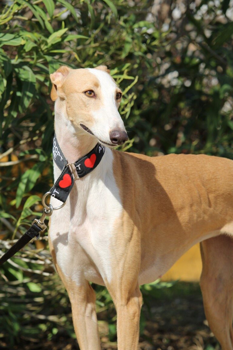 💛 Soprana, magnifique galga à la robe cannelle et blanche, est une âme douce et lumineuse enfermée là où elle ne devrait jamais être : derrière les murs froids d’un refuge…
