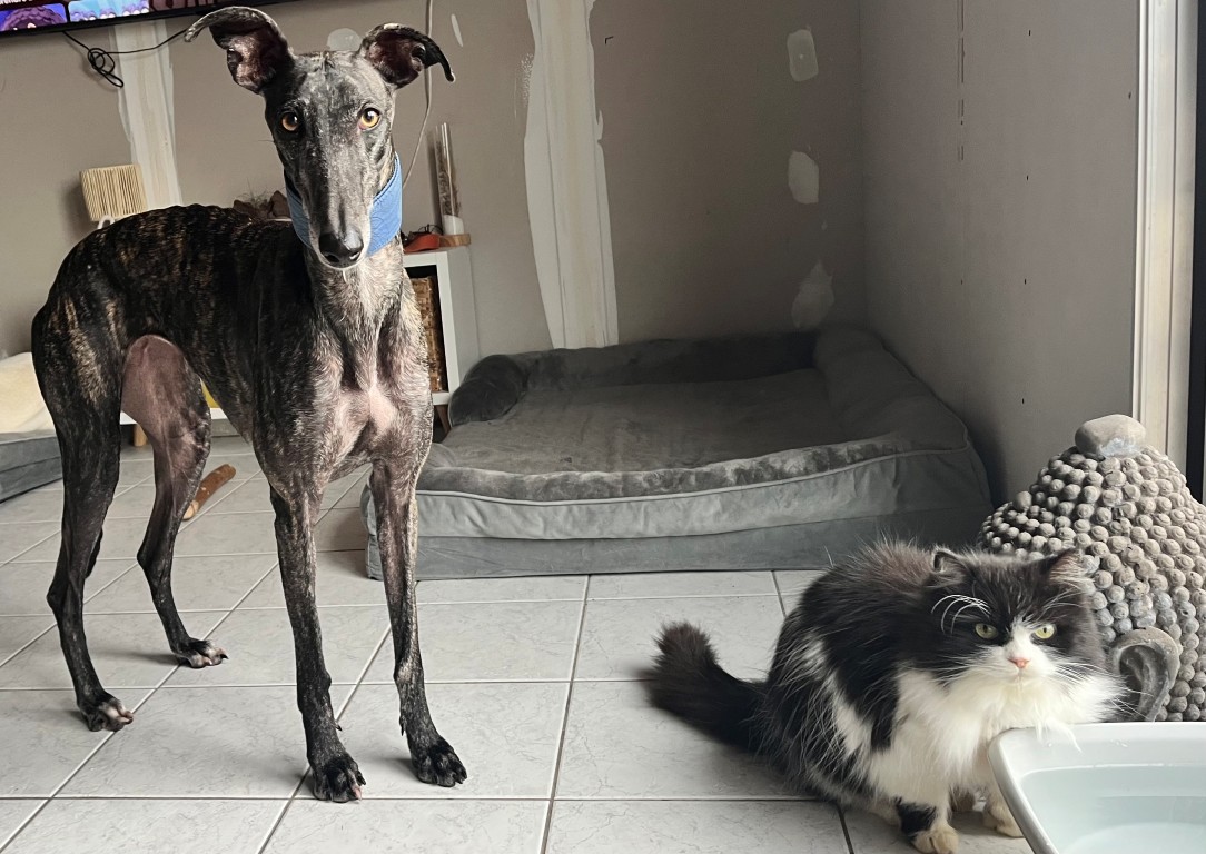 Elle peut vivre avec un chat, à condition que celui-ci soit à l’aise avec les chiens.