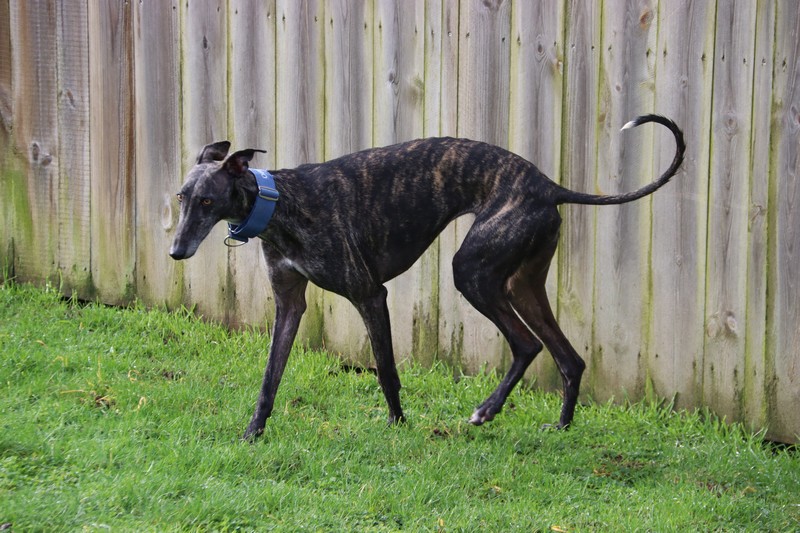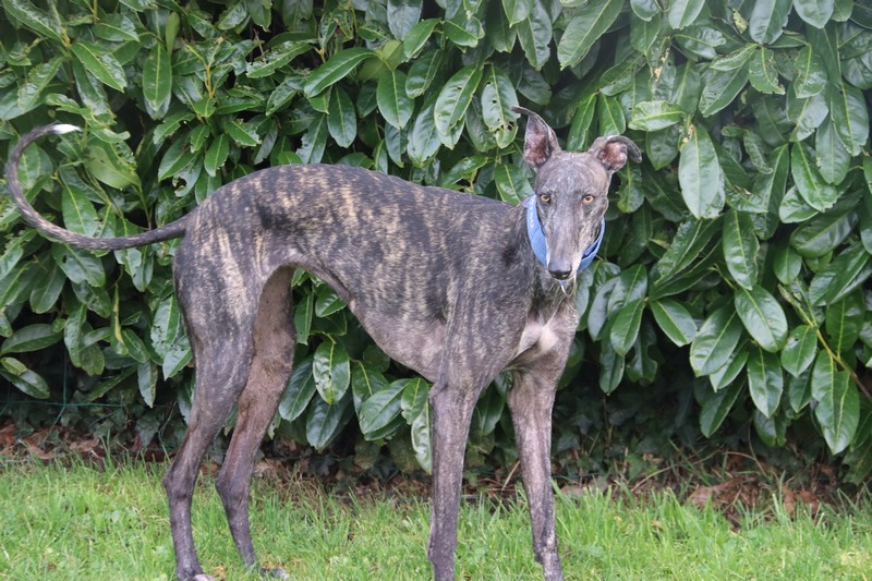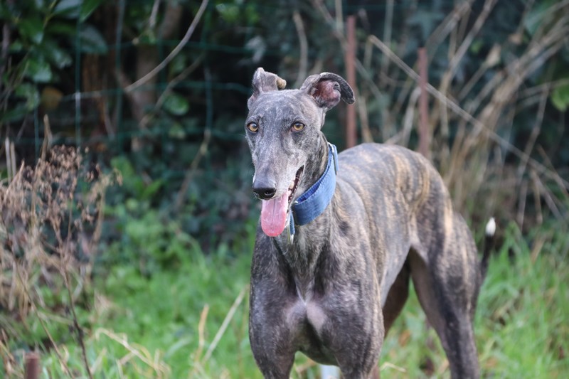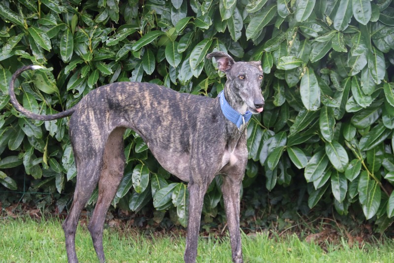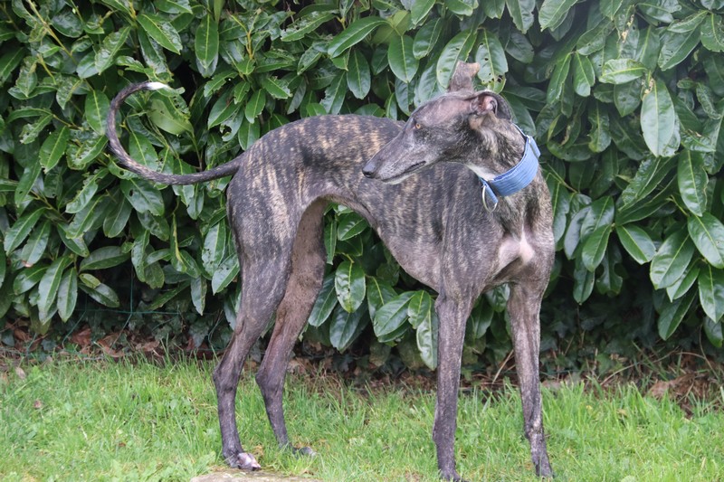 Magnifique galga bringée, elle attend patiemment sa famille pour la vie.